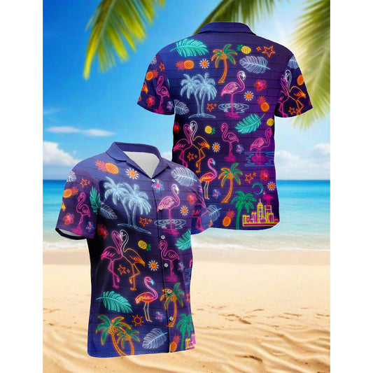 Netecom Neon Flamingo Hawaiian Shirt for Men, Button...
