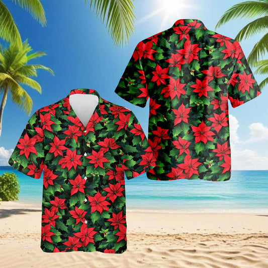 Netecom Poinsettia Pattern Hawaiian Shirt for Men, B...