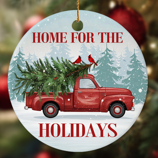 Netecom Vintage Red Truck with Tree Ornament, Home for the Holidays Ceramic Ornament for Christmas Tree Hanging Decorations Gift, Truck Lover Gifts, Xmas Party Present