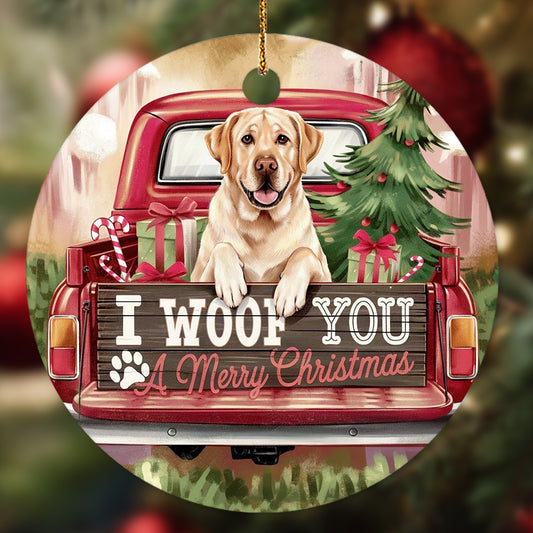 Netecom Adorable Golden Retriever in Christmas Red Truck Ornament, I Woof You Happy Pawlidays Ceramic Ornament for Christmas Tree Hanging Decorations Gift, Dog Lover Gifts, Holiday Decor Present