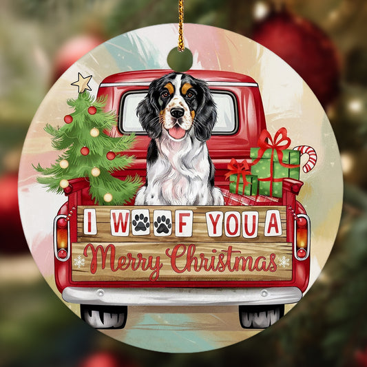 Netecom Cute Spaniel in Red Truck Ornament, I Woof You a Merry Christmas Ceramic Ornament for Christmas Tree Hanging Decorations Gift, Dog Lover Gifts, Holiday Party Present