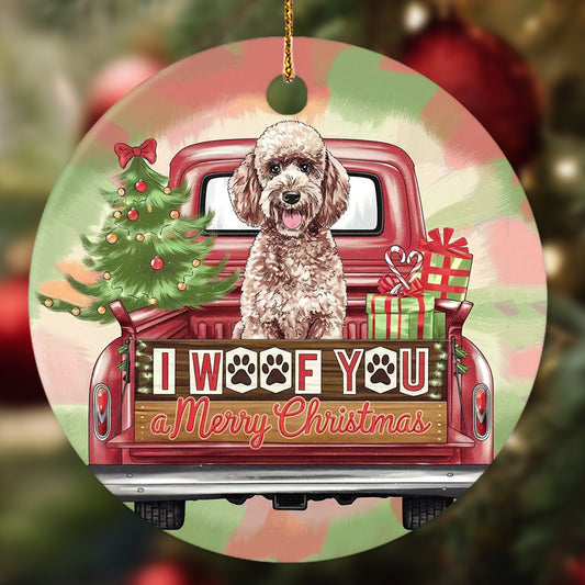 Netecom Adorable Poodle in Vintage Pickup Truck Ornament, I Woof You Happy Pawlidays Ceramic Ornament for Christmas Tree Hanging Decorations Gift, Dog Lover Gifts, Christmas Decor Present