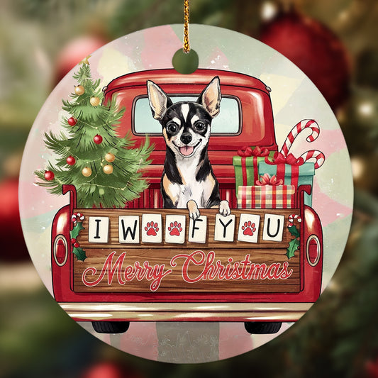 Netecom Adorable Chihuahua in Christmas Truck Ornament, I Woof You Happy Pawlidays Ceramic Ornament for Christmas Tree Hanging Decorations Gift, Dog Lover Gifts, Holiday Decor Present