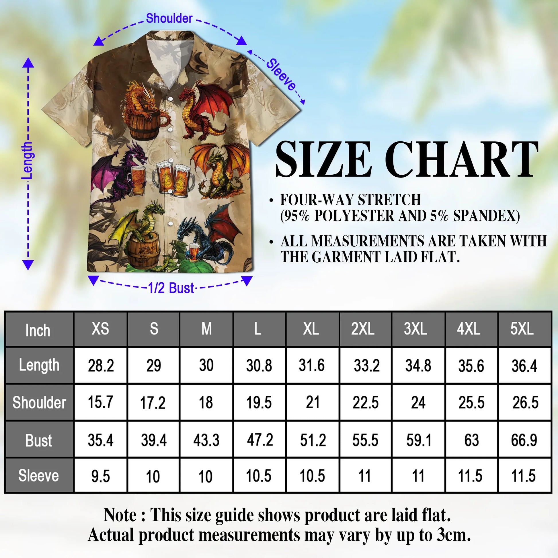 Made from 95% Polyester and 5% Spandex, these Hawaiian shirts are: