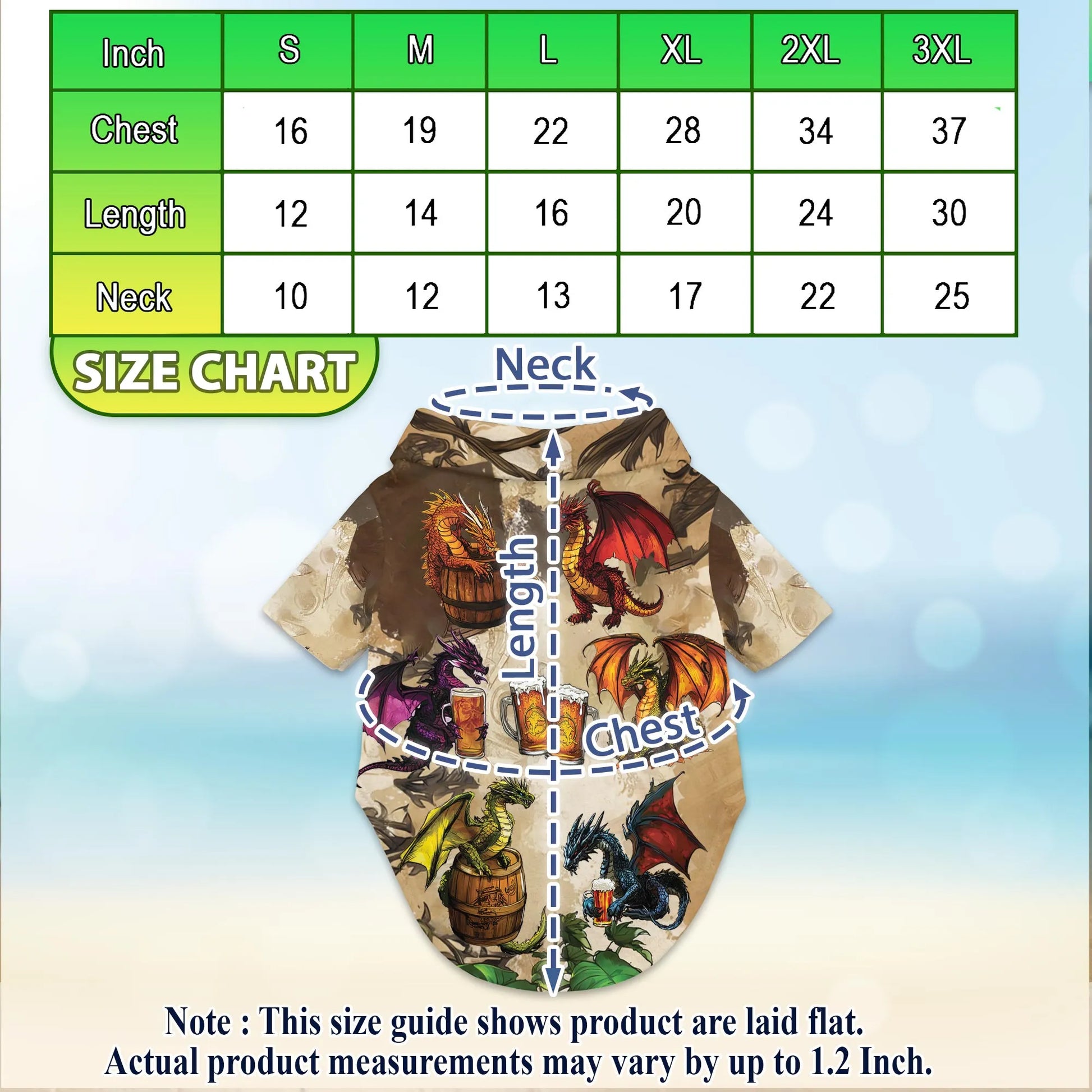 Dog clothing sizes: S, M, L, XL, 2XL, 3XL