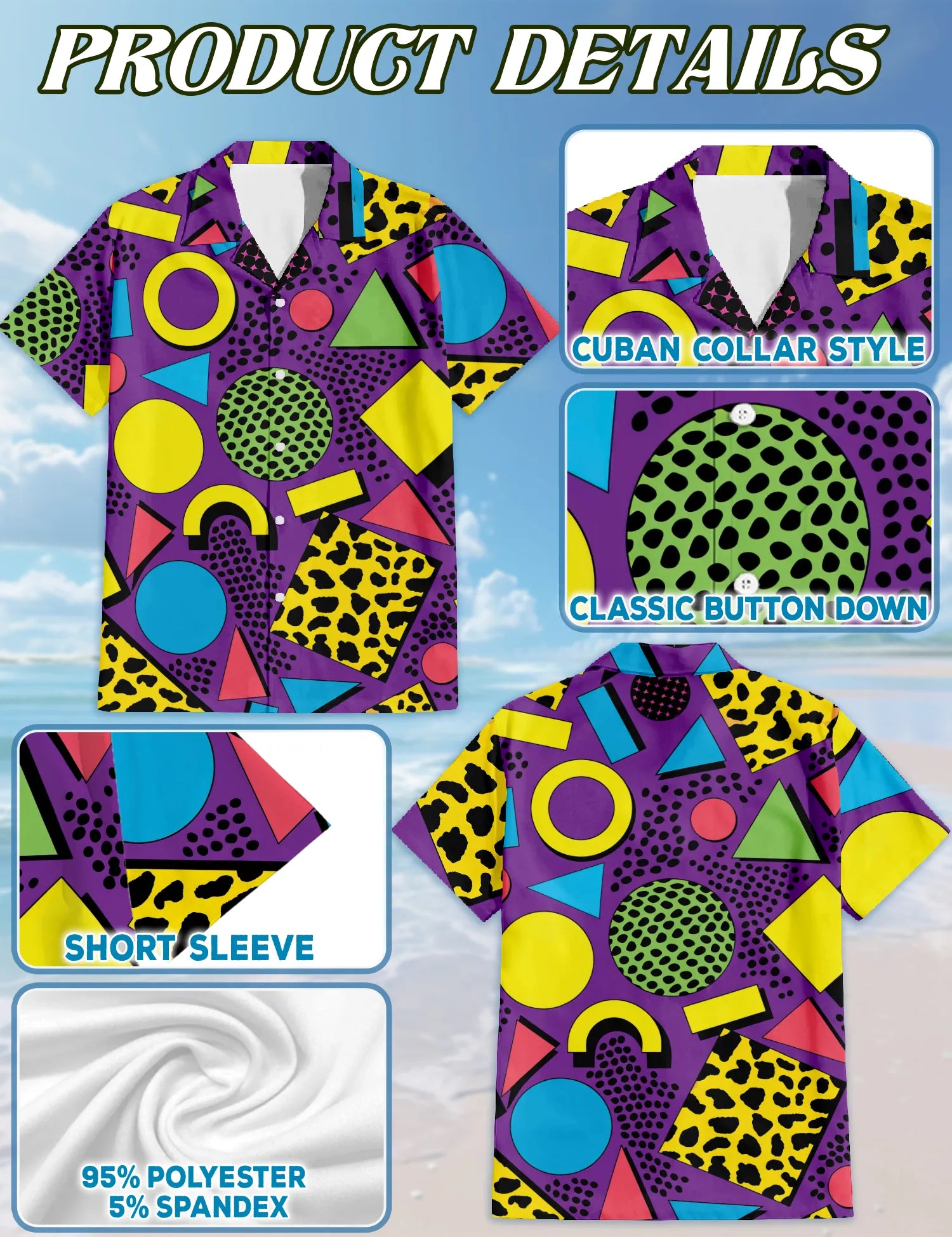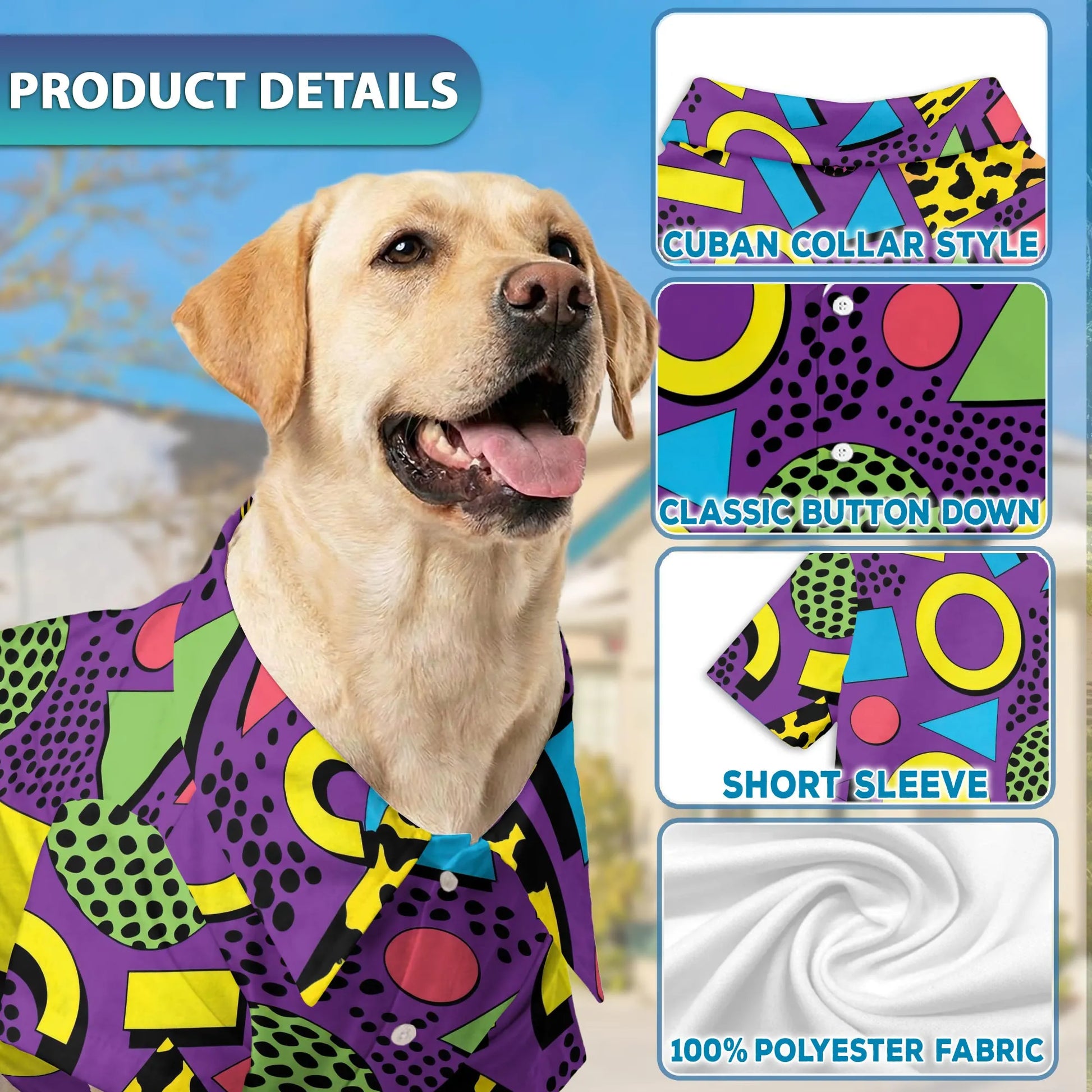 Matching Dog and Owner 80s Retro Hawaiian Shirts – Colorful Geometric Summer Beach Outfit