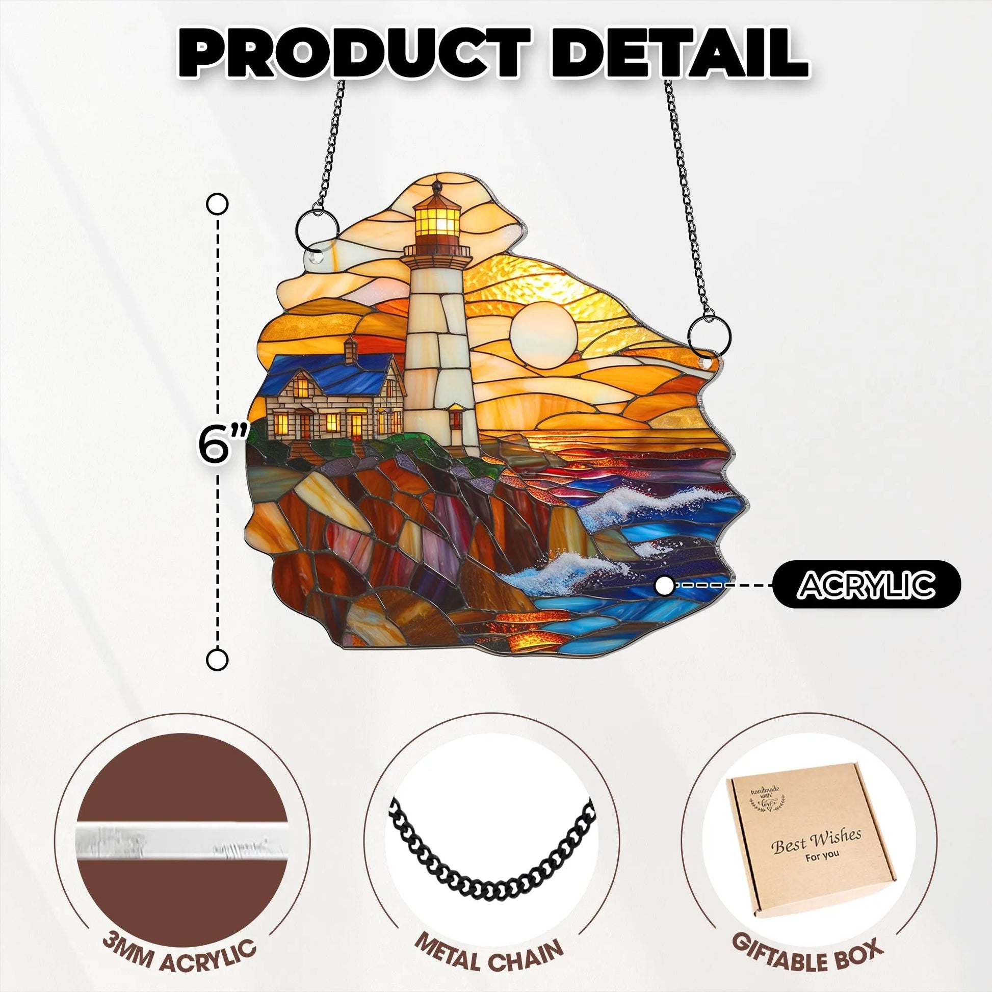 Netecom Coastal Lighthouse Acrylic Suncatcher – Sunset on the Sea, Beach Decor, Nature Lover Gift, Window Hanging for Home Car