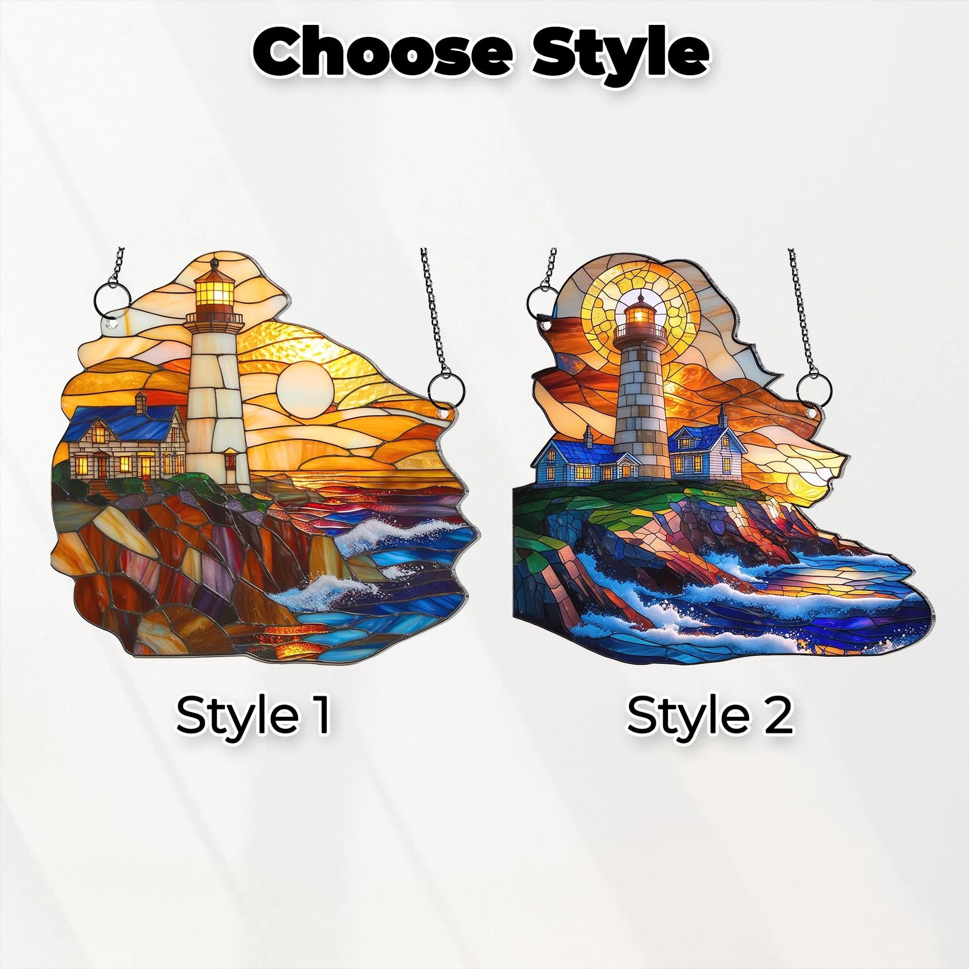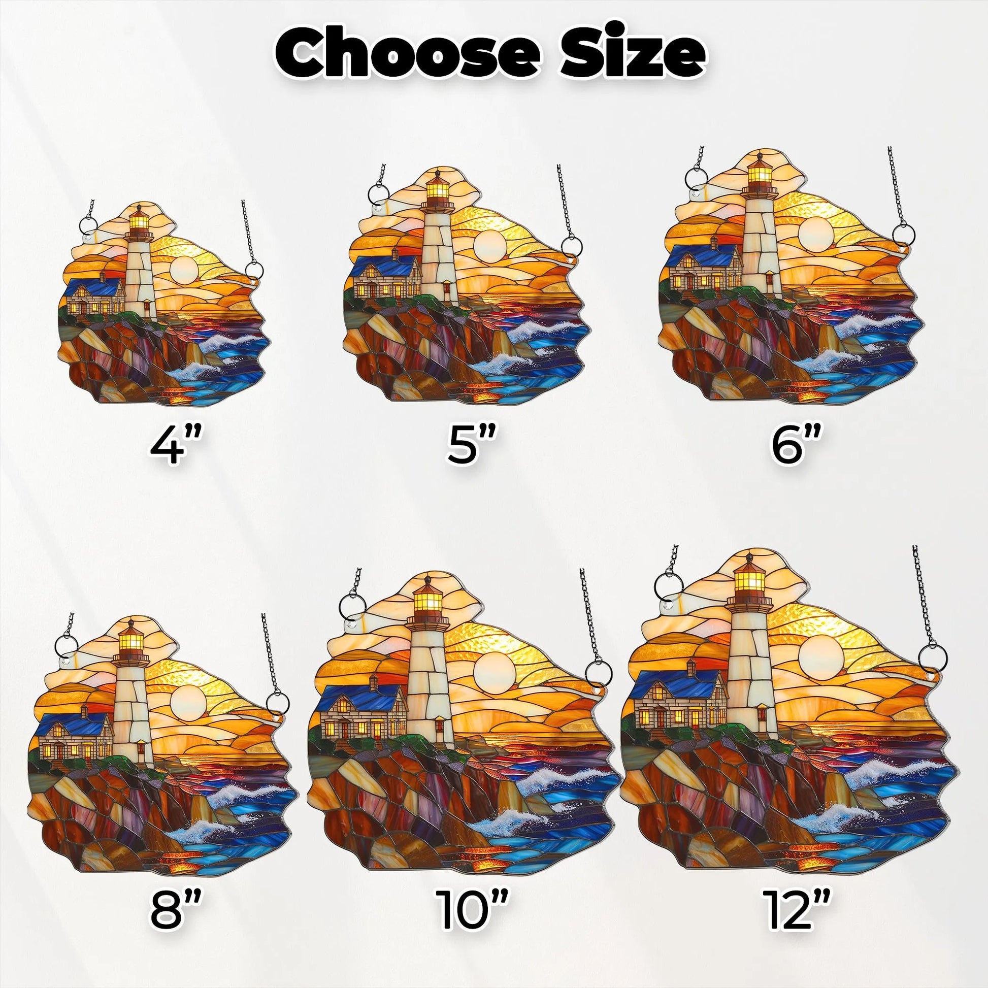 Coastal Charm: This suncatcher beautifully captures the essence of beach sunsets and lighthouse imagery, bringing the serenity of the ocean to your space.