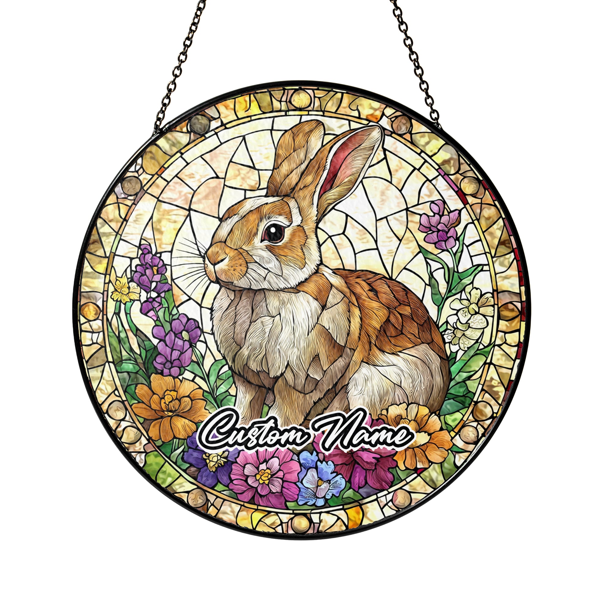 Netecom Custom Rabbit Stained Glass Ornament, Personalized Memorial Suncatcher, Pet Loss Remembrance Gift, Christmas Decoration