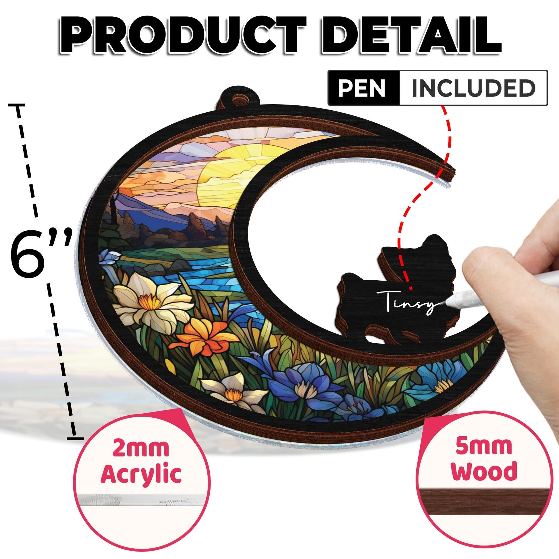 Our stained acrylic window hangings are a beautiful way to memorialize your cherished pet. When sunlight touches it, it creates a warm and peaceful glow, bringing joy and happiness to your heart. Display it: