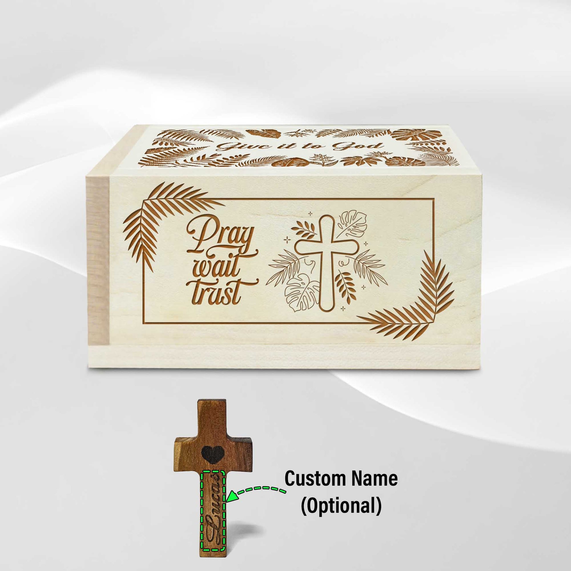 The included handheld wooden cross can be engraved with a custom name, making this prayer box a deeply personal faith keepsake for yourself or someone you care about.