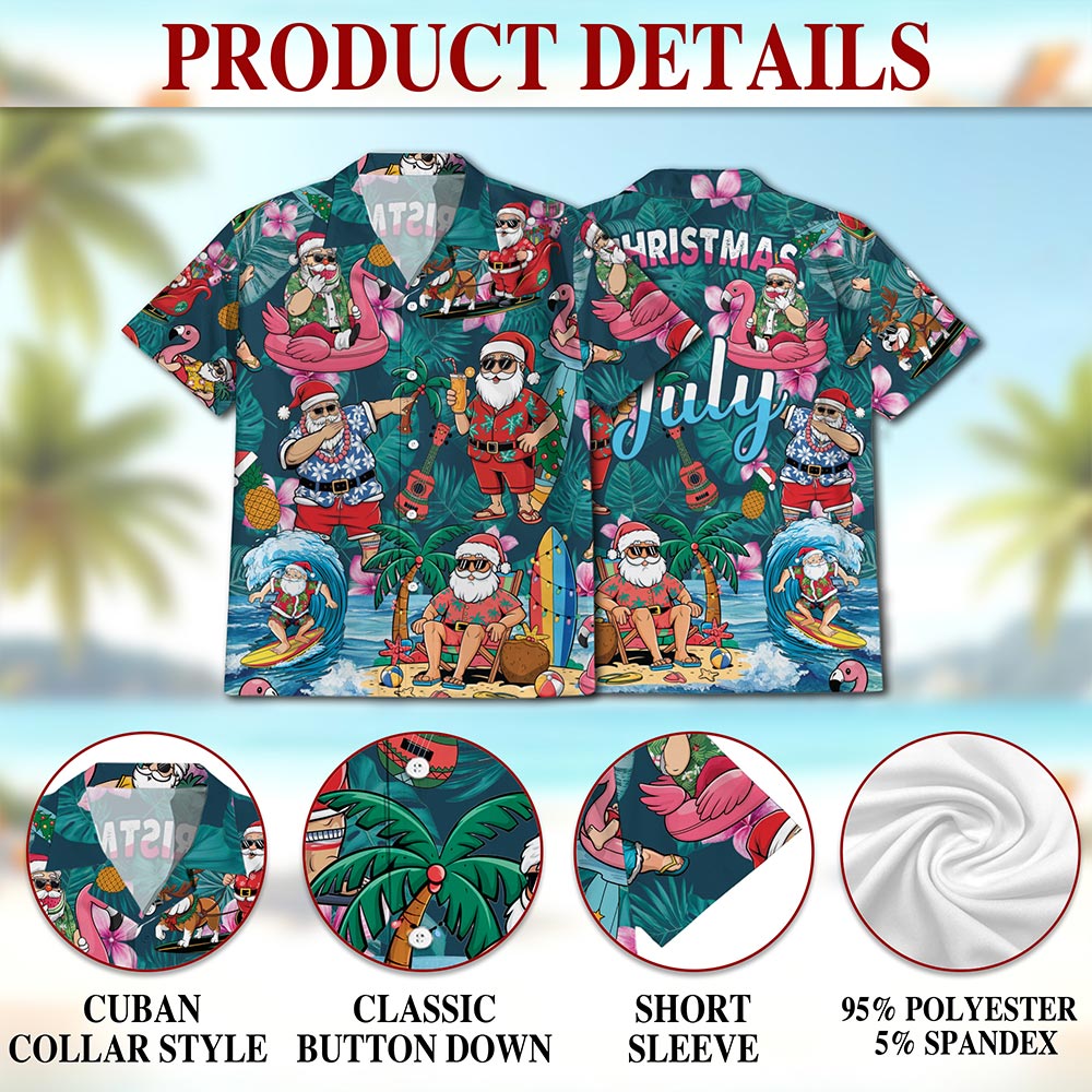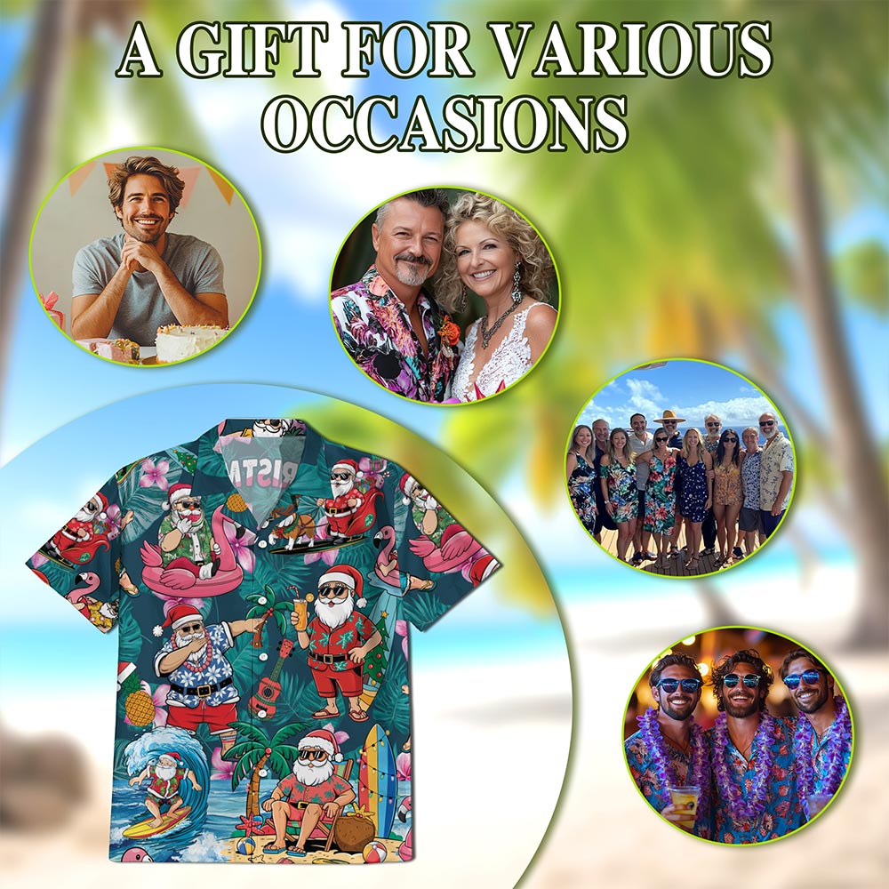 Netecom Funny Santa Claus Surfing Hawaiian Shirt for Men Women, Christmas In July Button Down Summer Beach Shirts, S-5XL