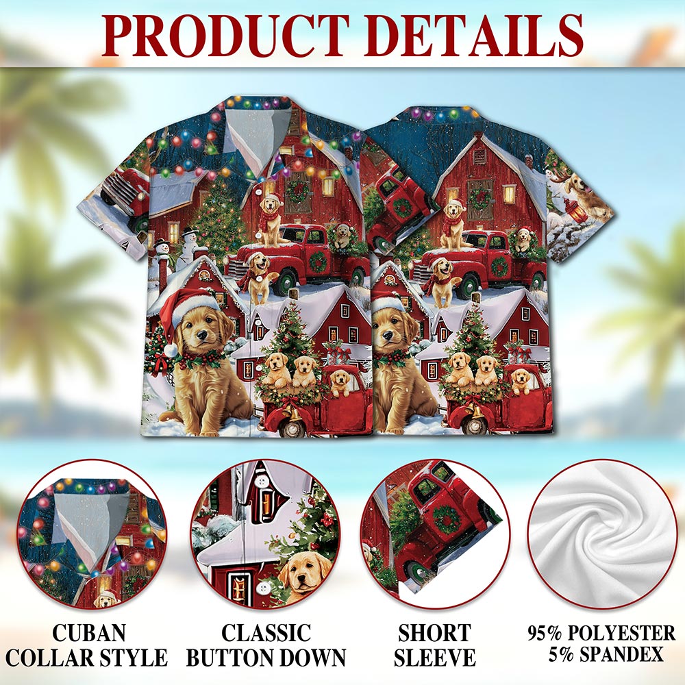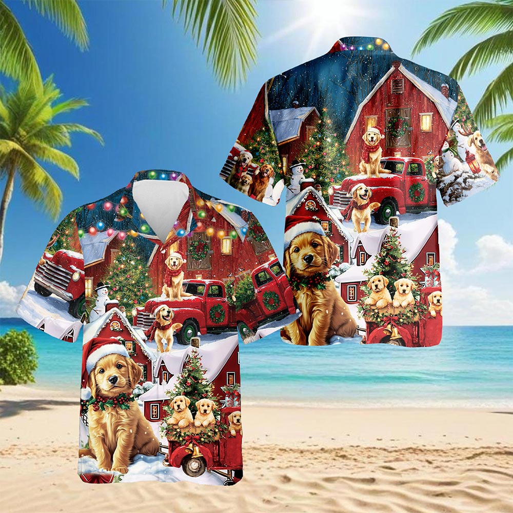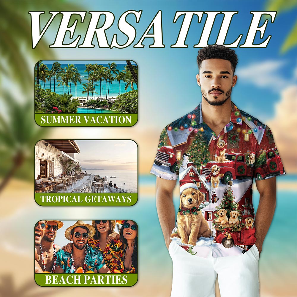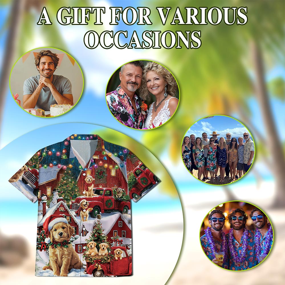 Netecom Golden Retriever Christmas Hawaiian Shirt for Men, Dog Lover Gift, Funny Animal Button Down Summer Beach Shirts, S-5XL