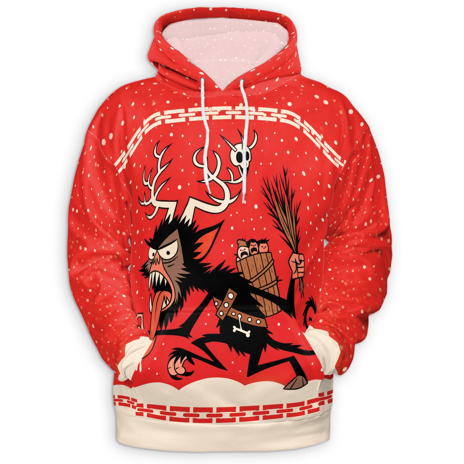 Netecom Krampus Christmas Print Hoodie with Front Pocket, All Over Demon Santa Graphic Sweatshirt Unisex Casual