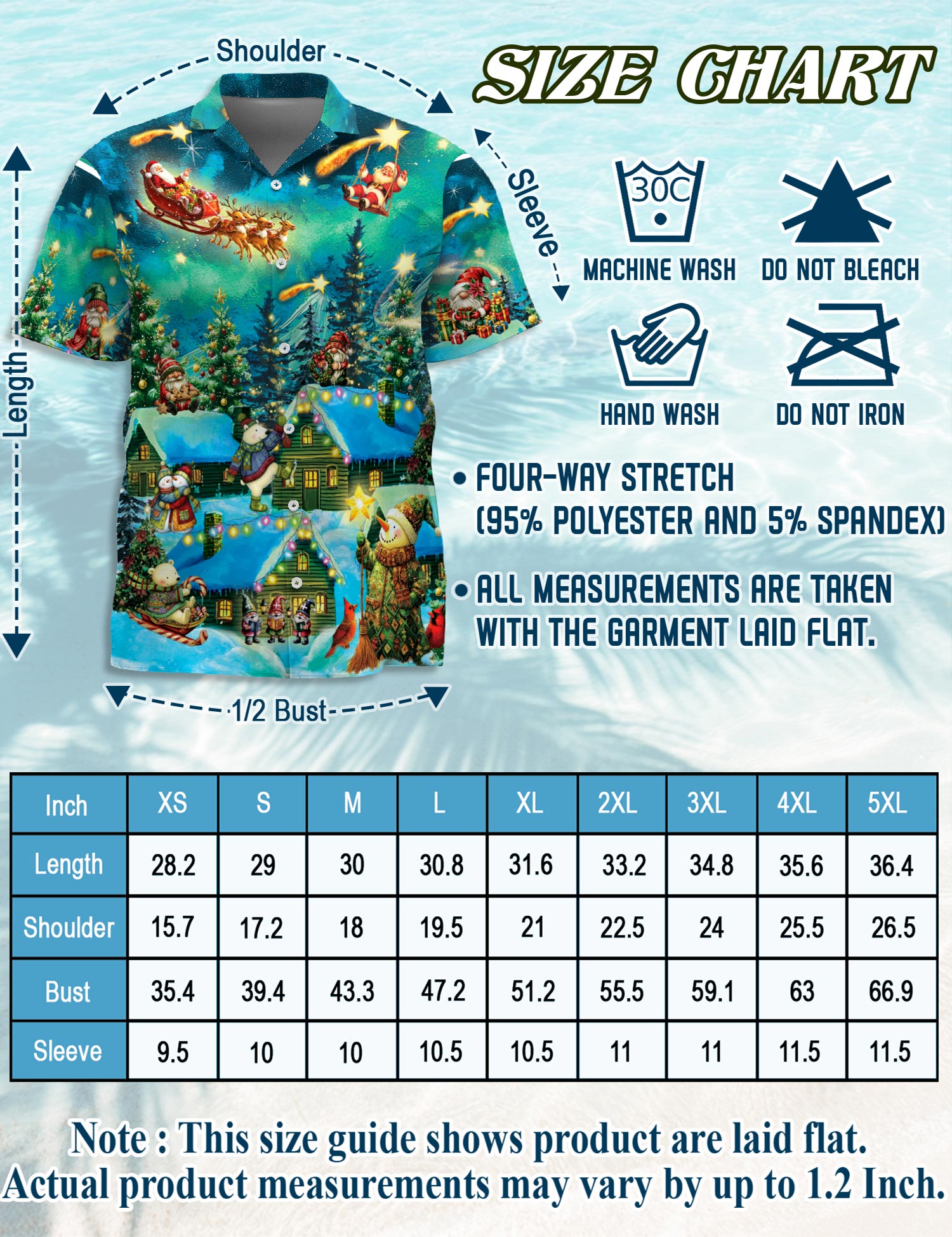 Netecom Magical Christmas Night Scene Hawaiian Shirt, Whimsical Santa Snowman Holiday Button Down Summer Beach Shirts, S-5XL