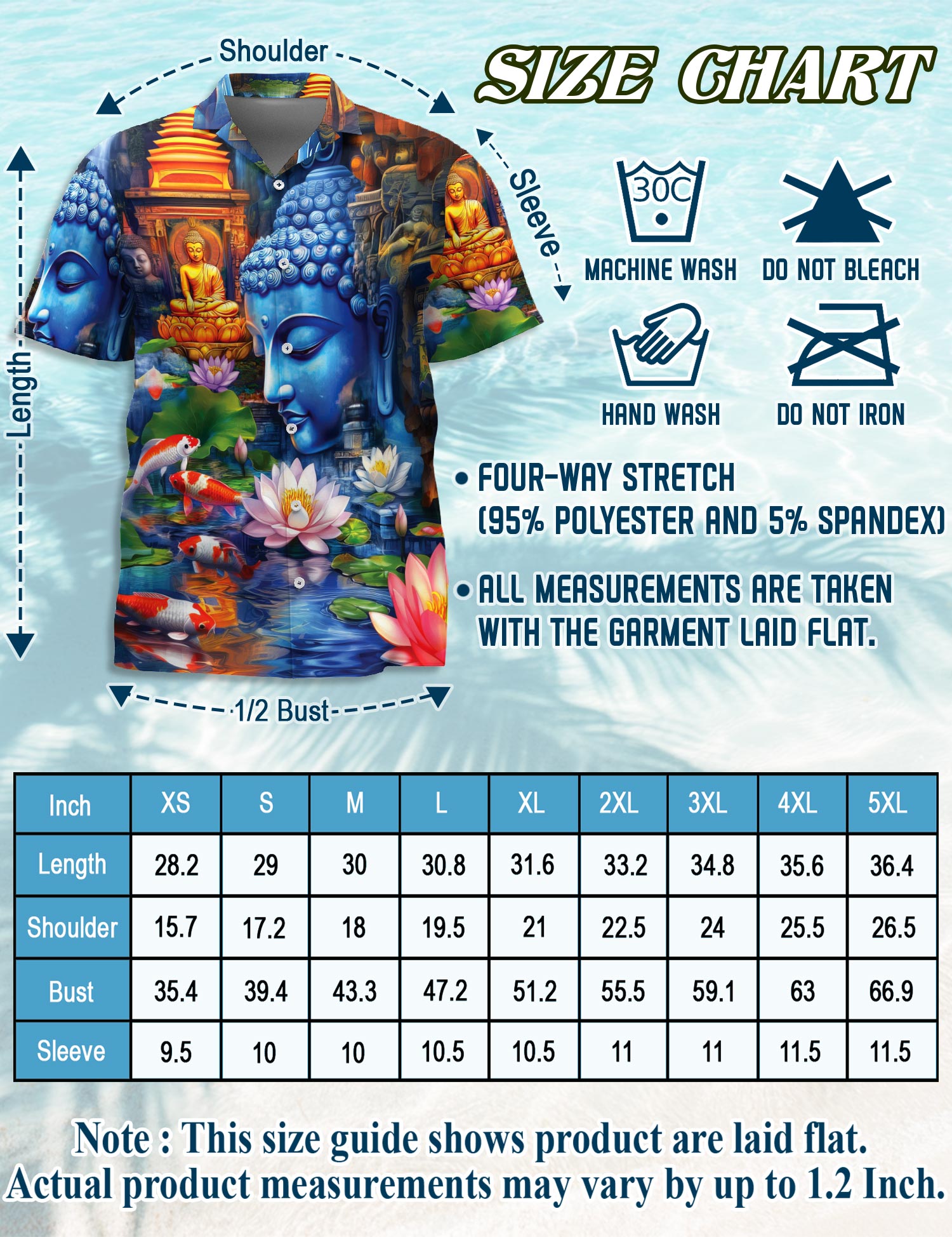 Made from 95% Polyester and 5% Spandex, these Hawaiian shirts are: