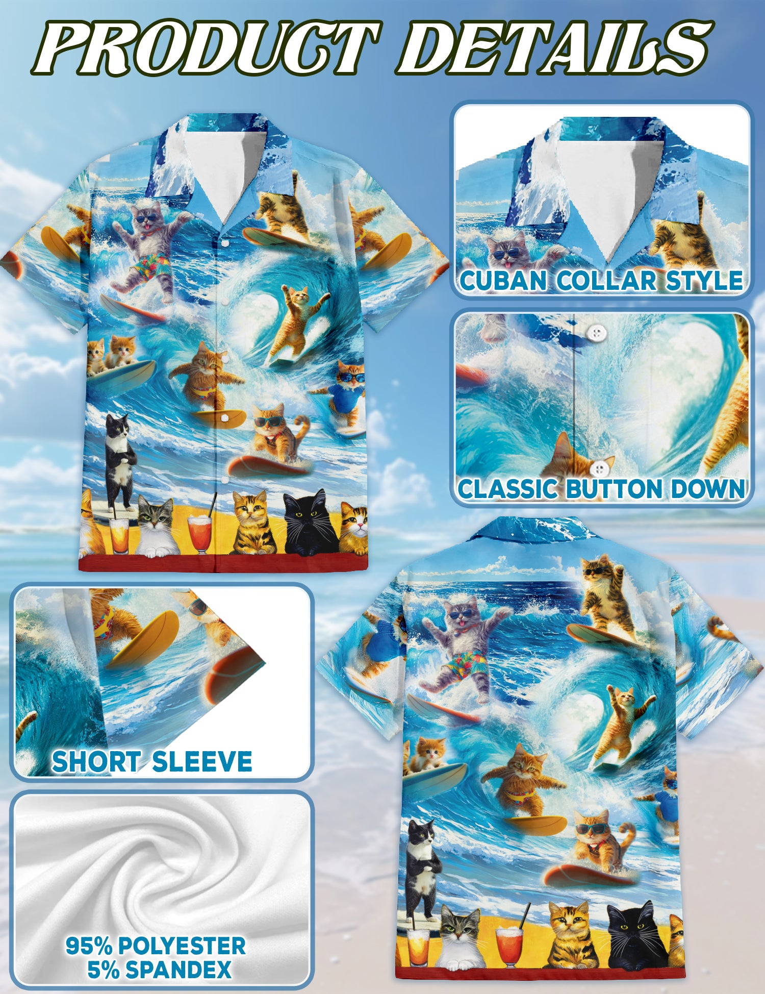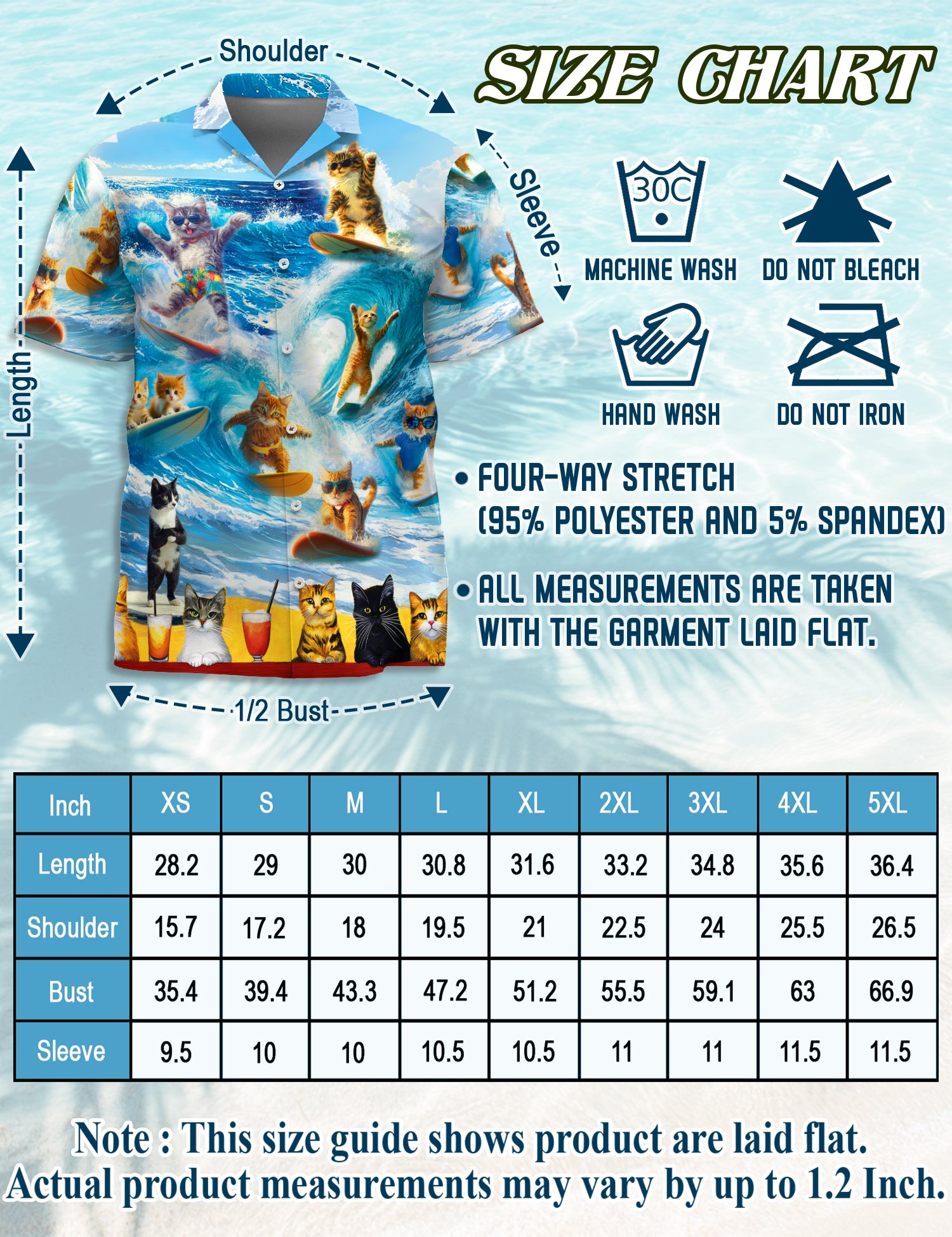 Made from 95% Polyester and 5% Spandex, these Hawaiian shirts are: