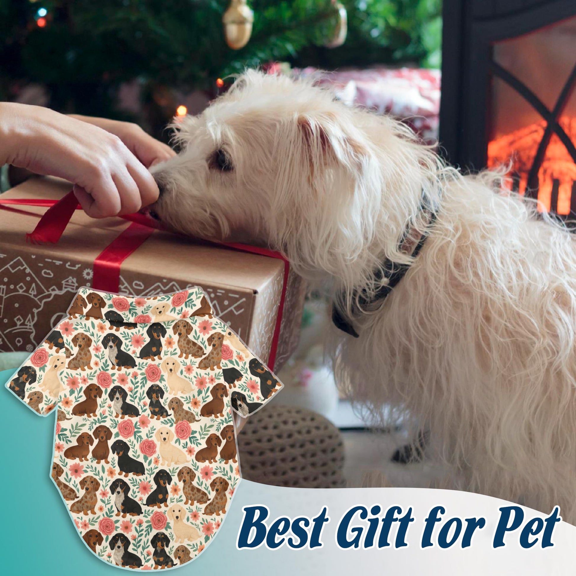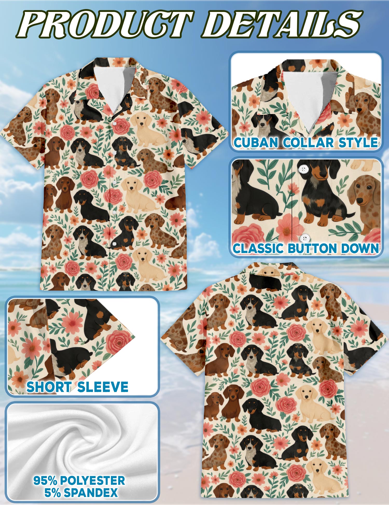 Netecom Matching Floral Dachshund Aloha Hawaiian Shirt for Dog and Owner, Aloha Summer Shirt, Dog Breed Floral Print Outfit for Pet and Human, Beach Vacation Casual Wear