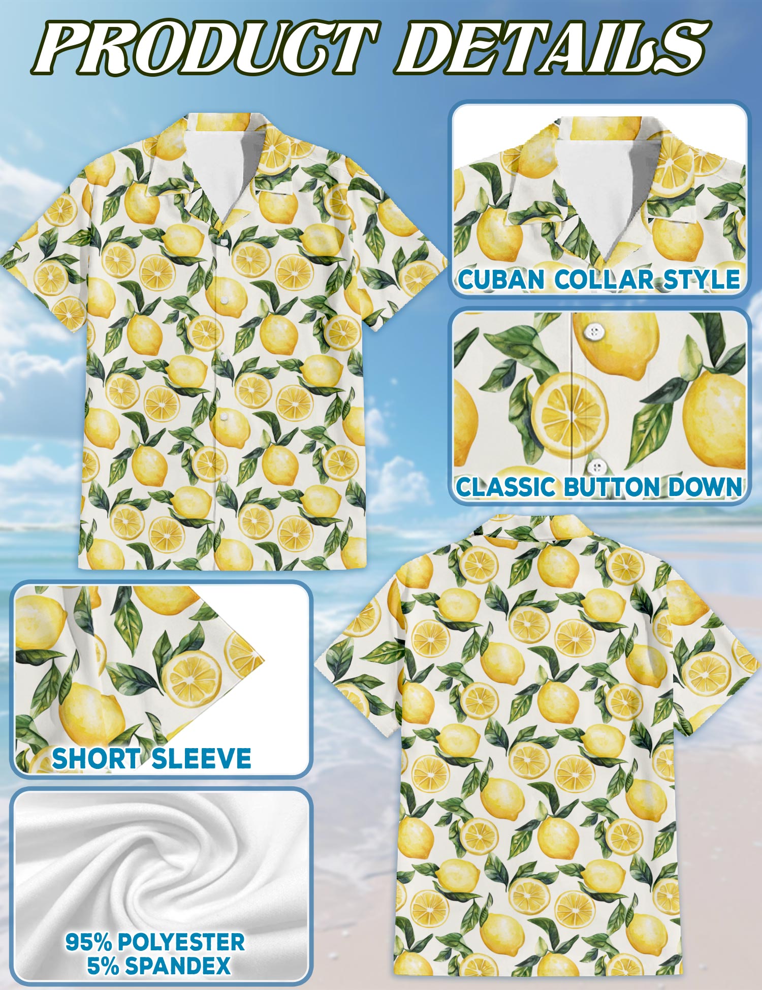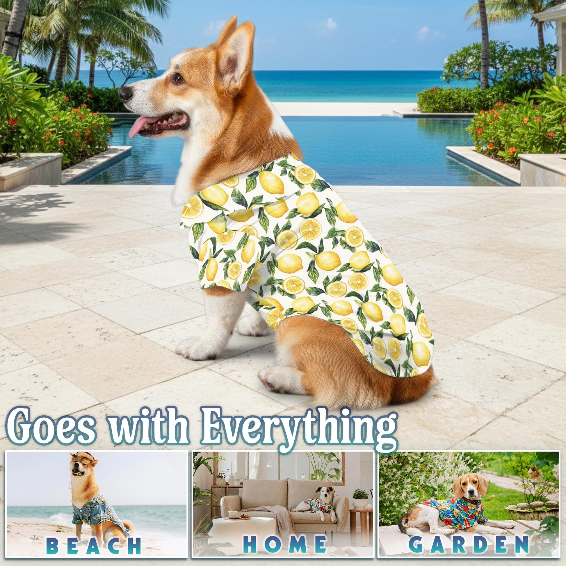 Netecom Matching Lemon Aloha Hawaiian Shirt for Dog and Owner, Bright Fruit Theme Summer Button Down Shirt, Cute Pet and Human Matching Outfit, Relaxed Beach Vacation Casual Wear