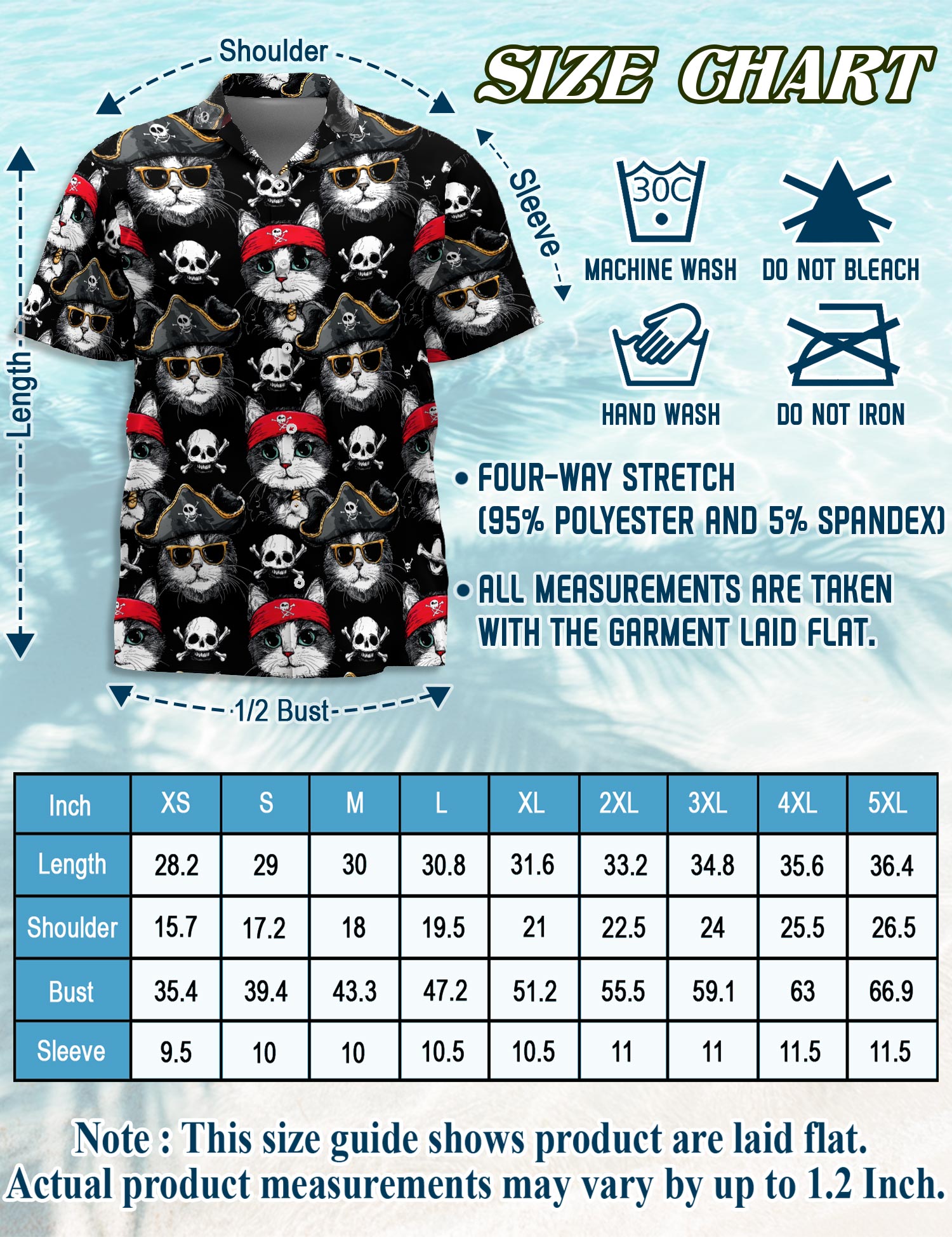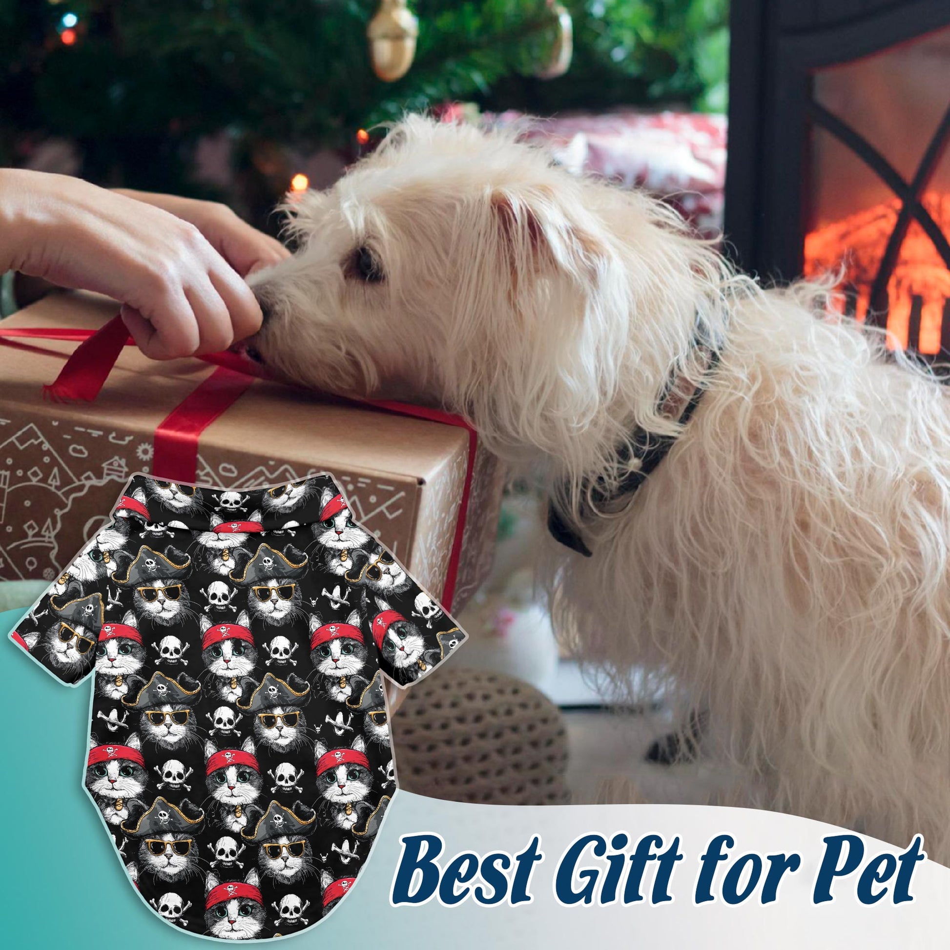 Netecom Matching Pirate Cat Hawaiian Shirt for Dog and Owner, Aloha Summer Shirt, Pirate Cat Print Outfit for Pet and Human, Beach Vacation Casual Wear