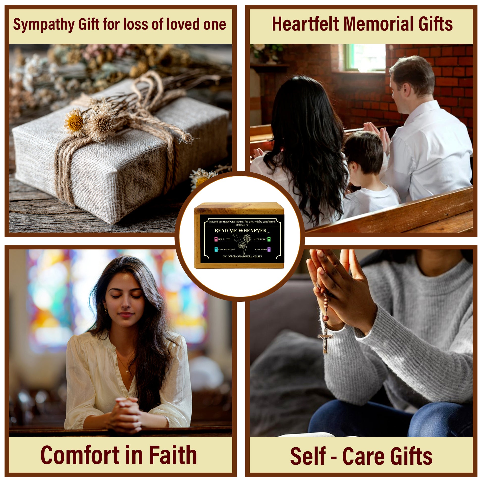 Made from durable pine wood with a warm, natural finish, this compact box (4.68" x 3.15" x 2.32") fits perfectly on desks, shelves, or bedside tables, adding a comforting faith-filled presence to any space.