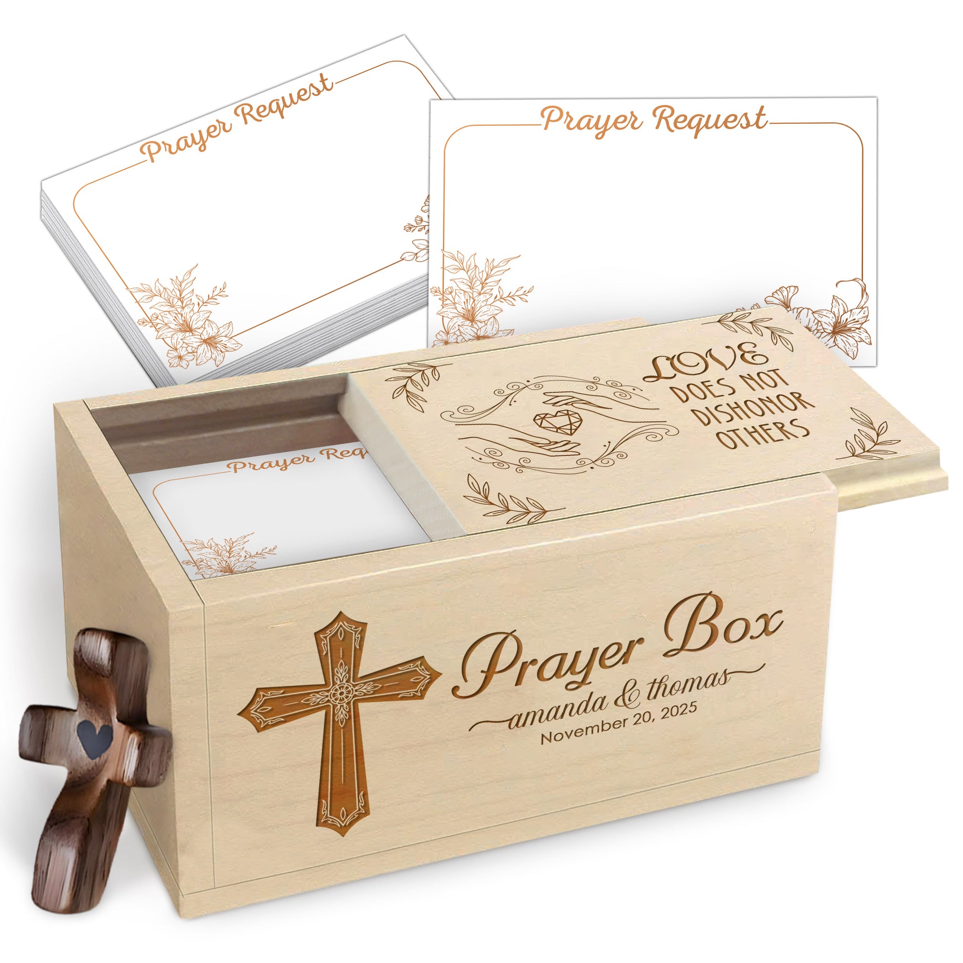 Netecom Personalized Couple Prayer Box for Valentine’s Day with 100 Prayer Request Cards & Wooden Cross – Christian Love Gift with Custom Names and Date
