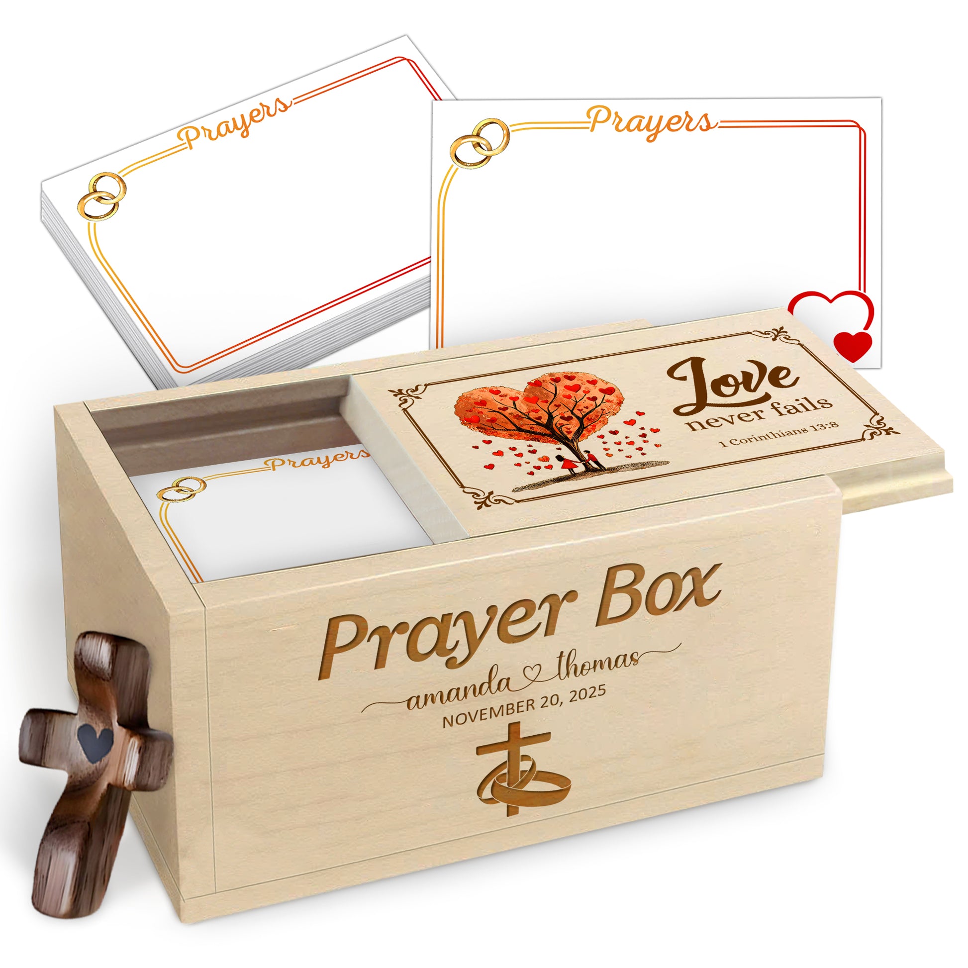 Featuring a beautiful faith-inspired design and customized with your names and special date, this prayer box is a lasting keepsake that celebrates love grounded in prayer.