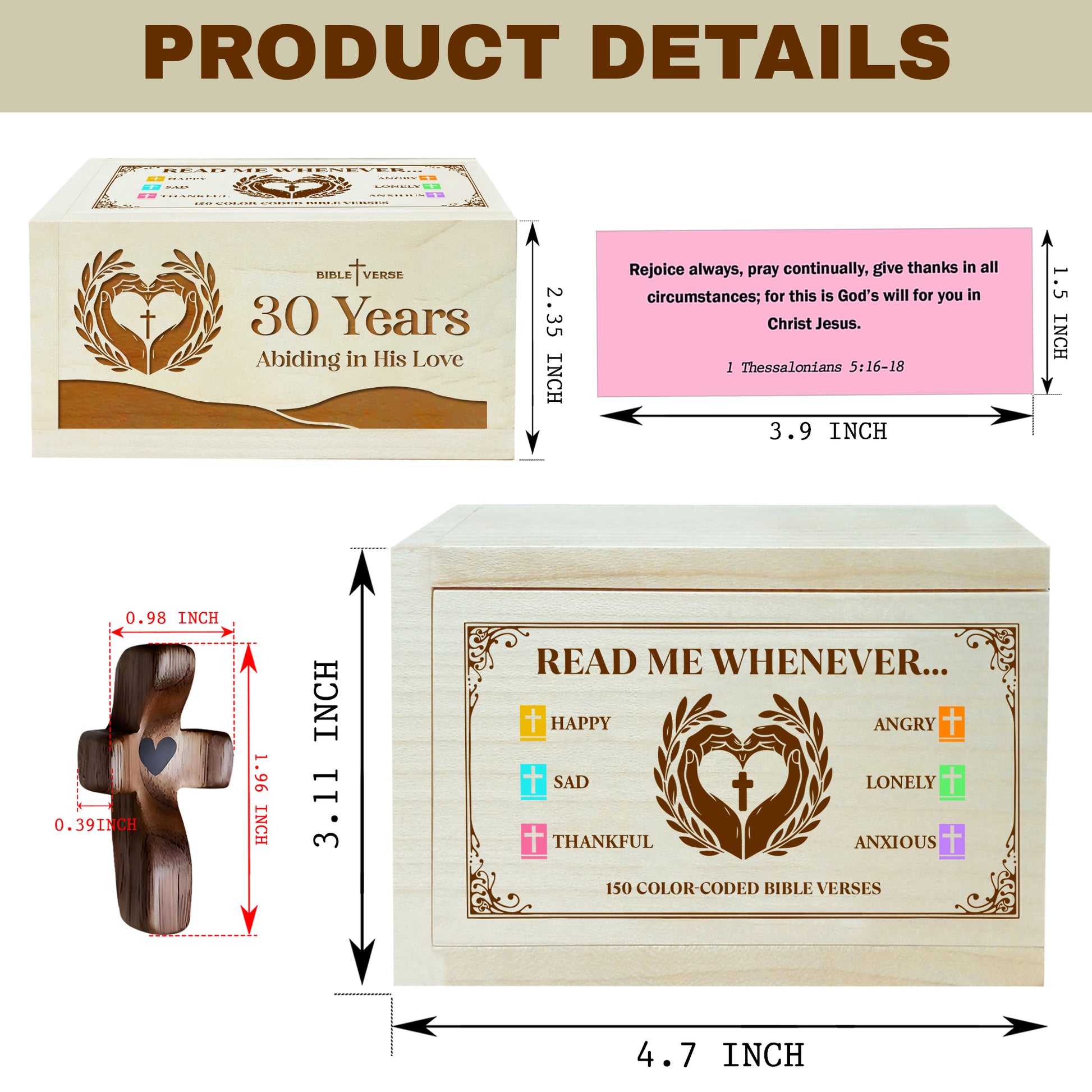Netecom Personalized Bible Verse Box for 30 Years Birthday, Custom Name & Age, Engraved Wood Scripture Box with Pocket Cross, 150 Daily Bible Verse Cards, Christian Birthday Gift