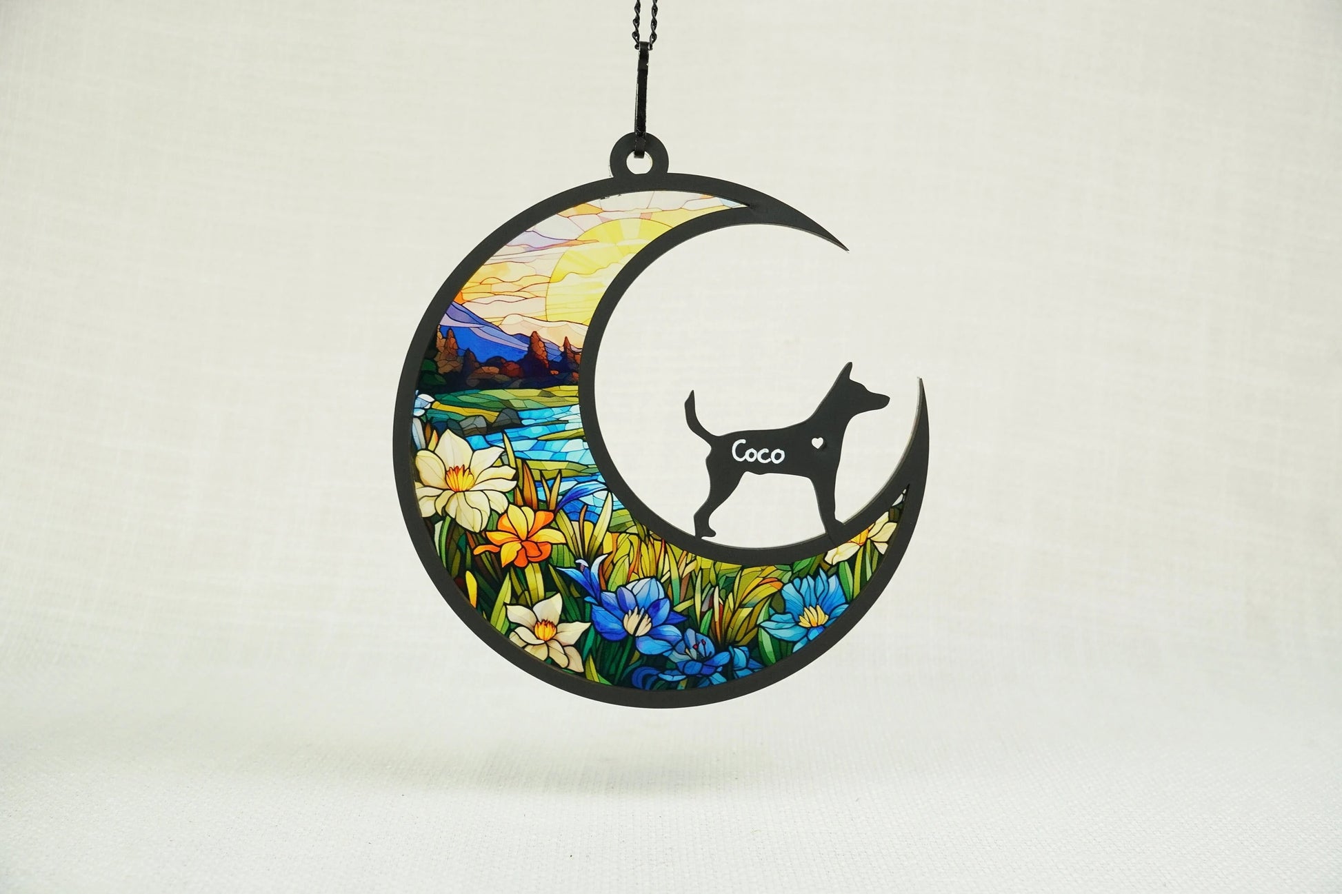 Netecom Personalized Fox Terrier Dog Memorial Suncatcher – Custom Pet Loss Sympathy Gift, Dog Passing Remembrance Ornament, Window and Car Hanging Decor