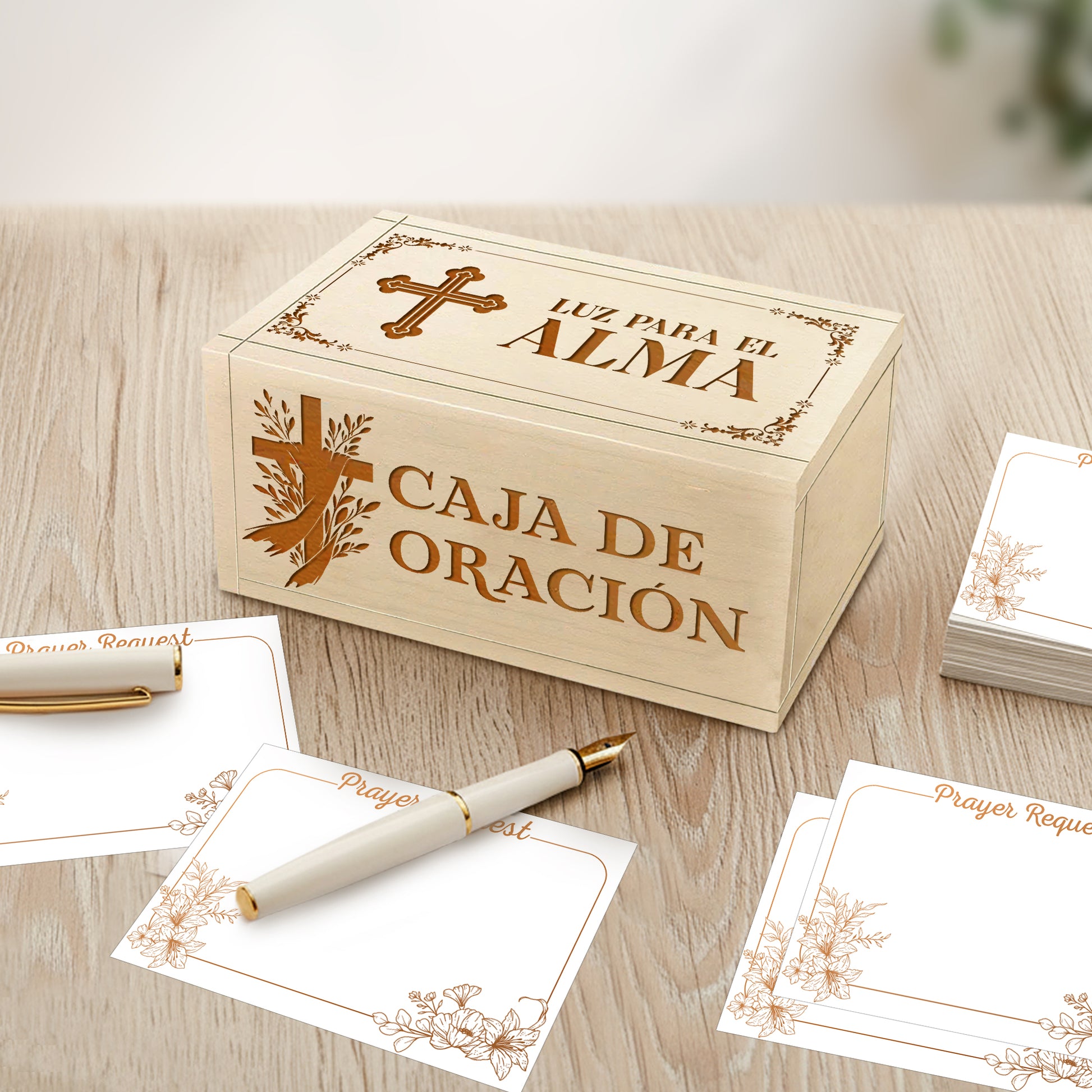 This beautifully crafted wooden prayer box is designed to support daily prayer, meditation, and moments of spiritual connection. Its elegant faith-inspired engraved design and natural wood finish create a serene space to write down prayers, intentions, gratitude, and reflections—keeping your faith close every day.