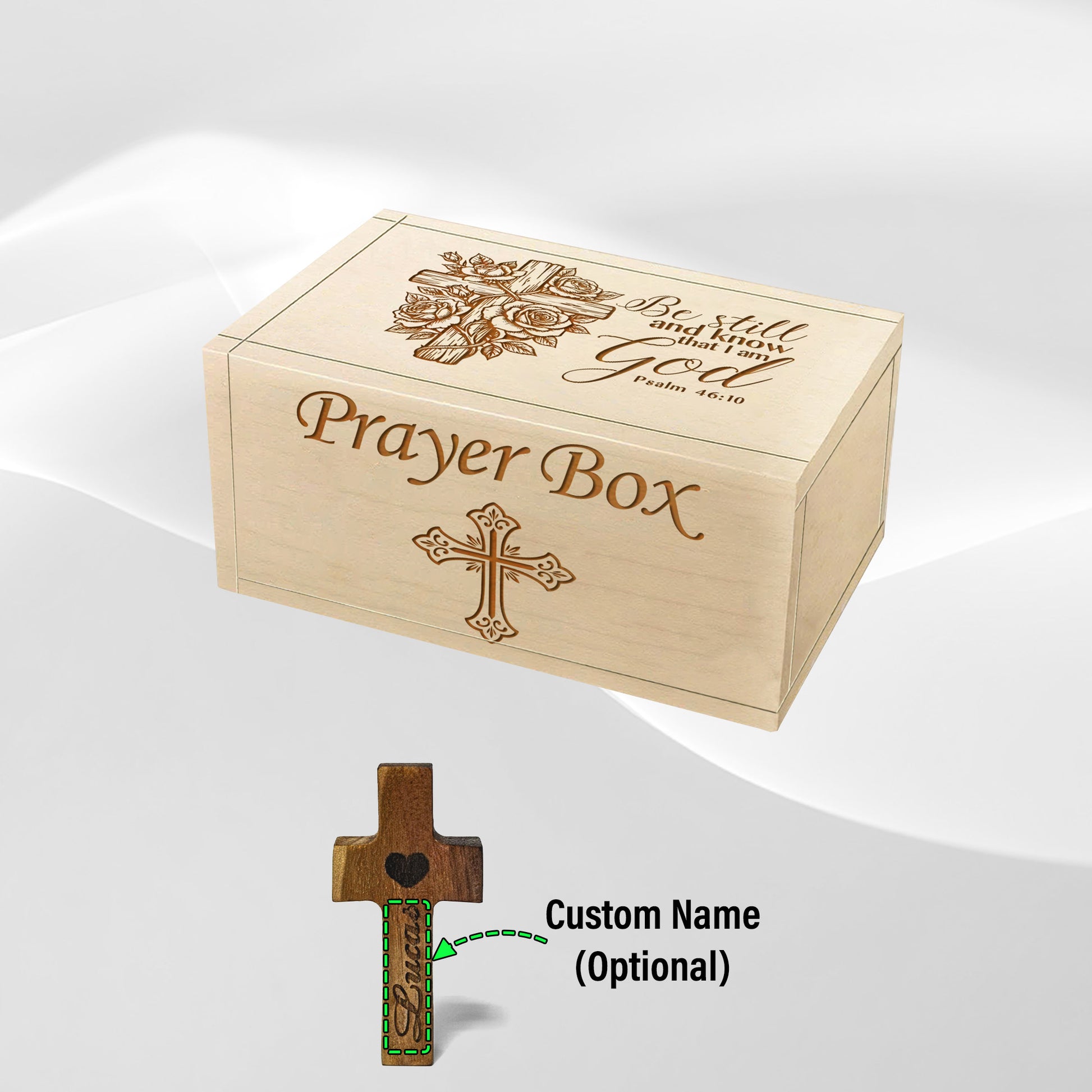 Netecom Personalized Wooden Prayer Box with 100 Prayer Request Cards & Custom Name Cross – Christian Faith Keepsake Gift for Her, Women