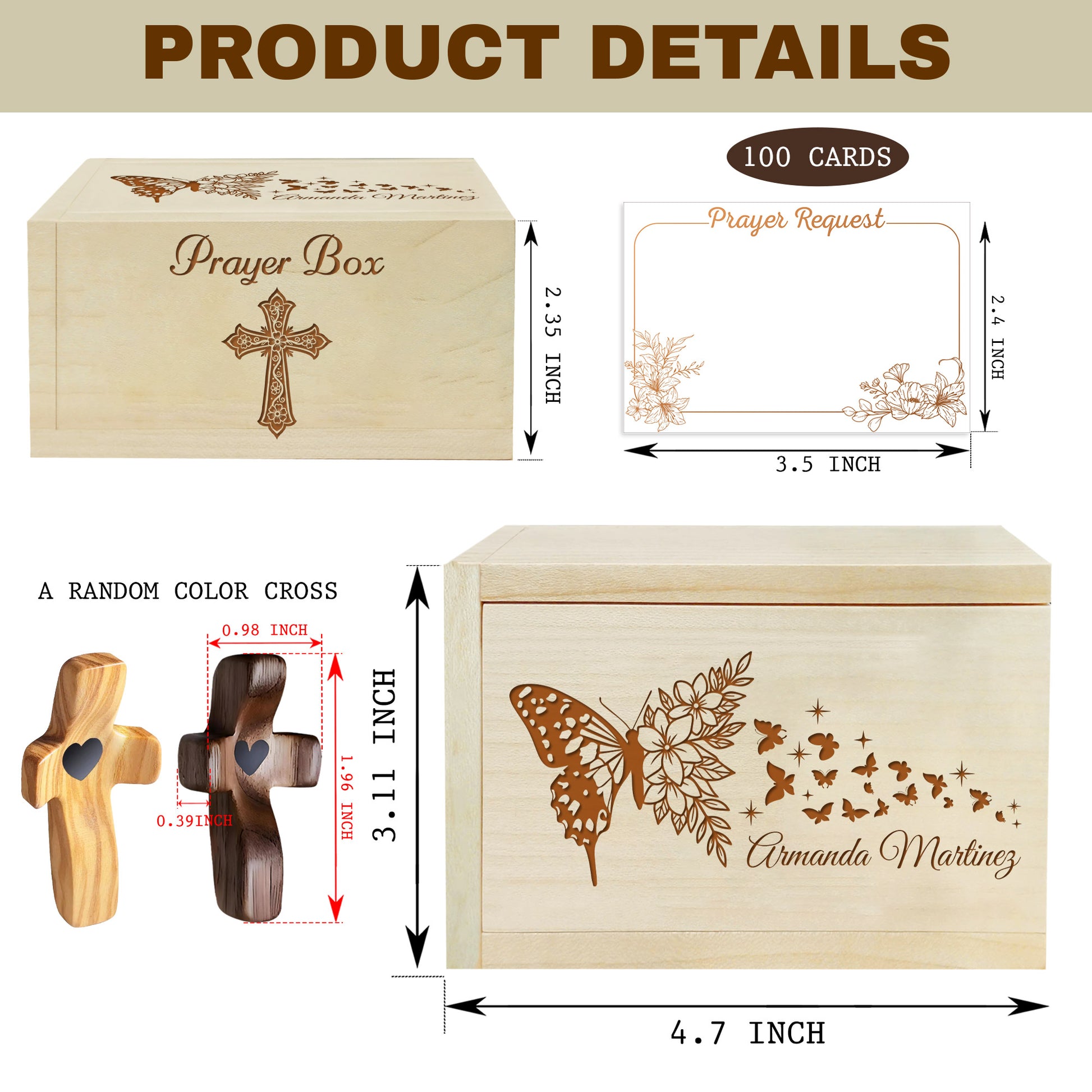 Netecom Personalized Wooden Prayer Box with 100 Prayer Request Cards & Custom Name Cross – Floral Christian Faith Gift for Daily Prayer