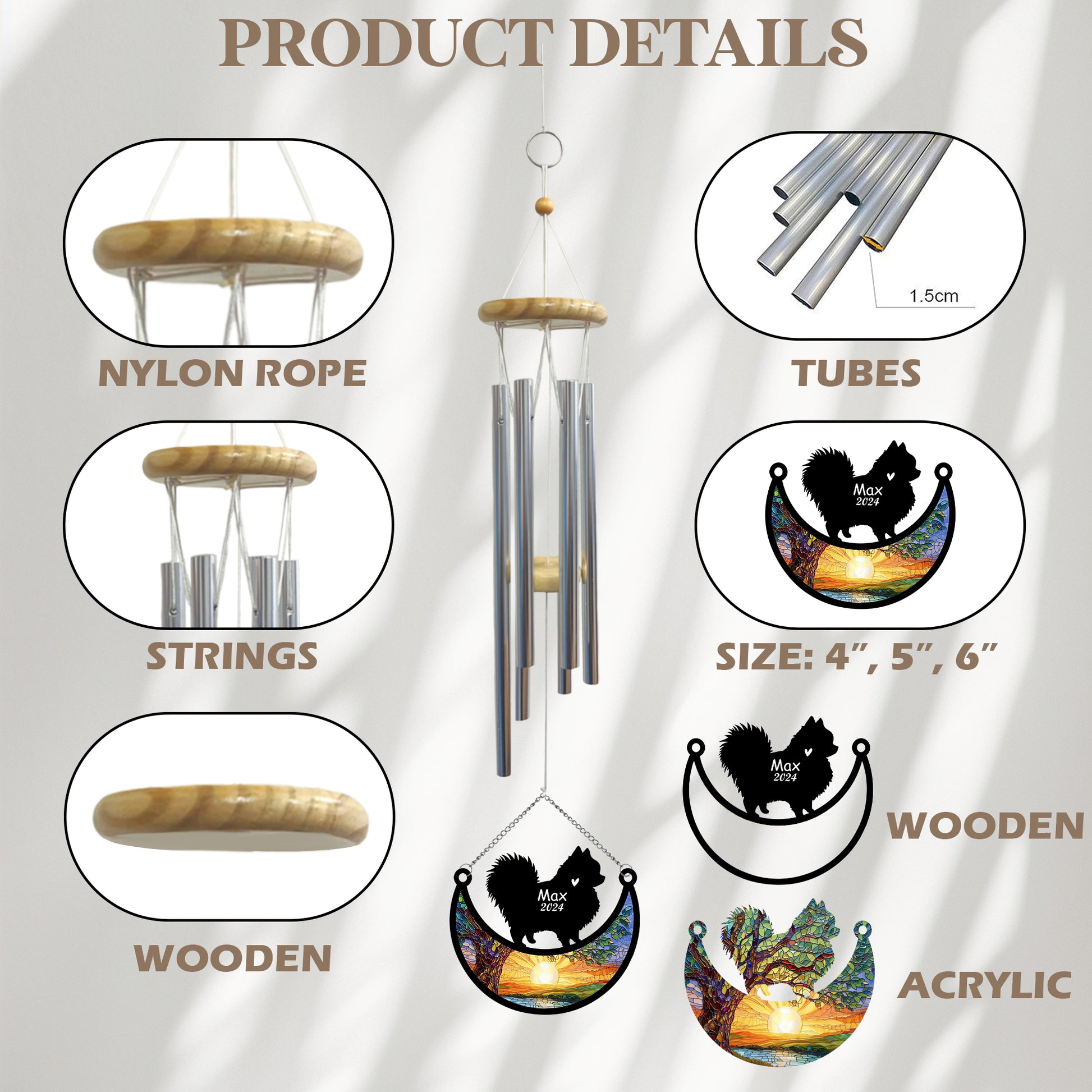 Netecom Pomeranian Memorial Suncatcher Wind Chimes, Personalized Pet Loss Ornament, Dog Bereavement Gift for Home or Garden