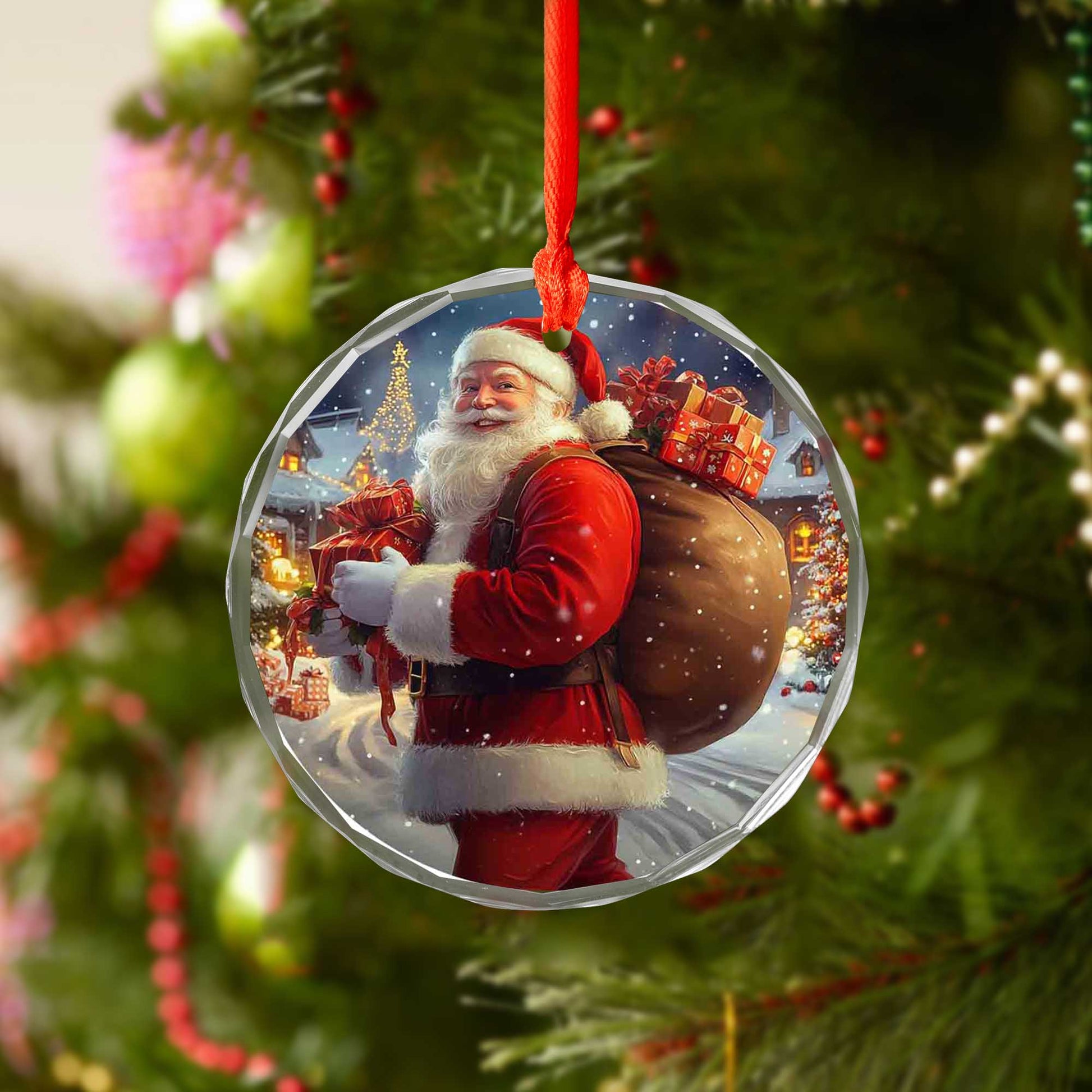 Netecom Santa Claus Carrying Presents Glass Ornament – Christmas Tree Decor, Festive Holiday Keepsake
