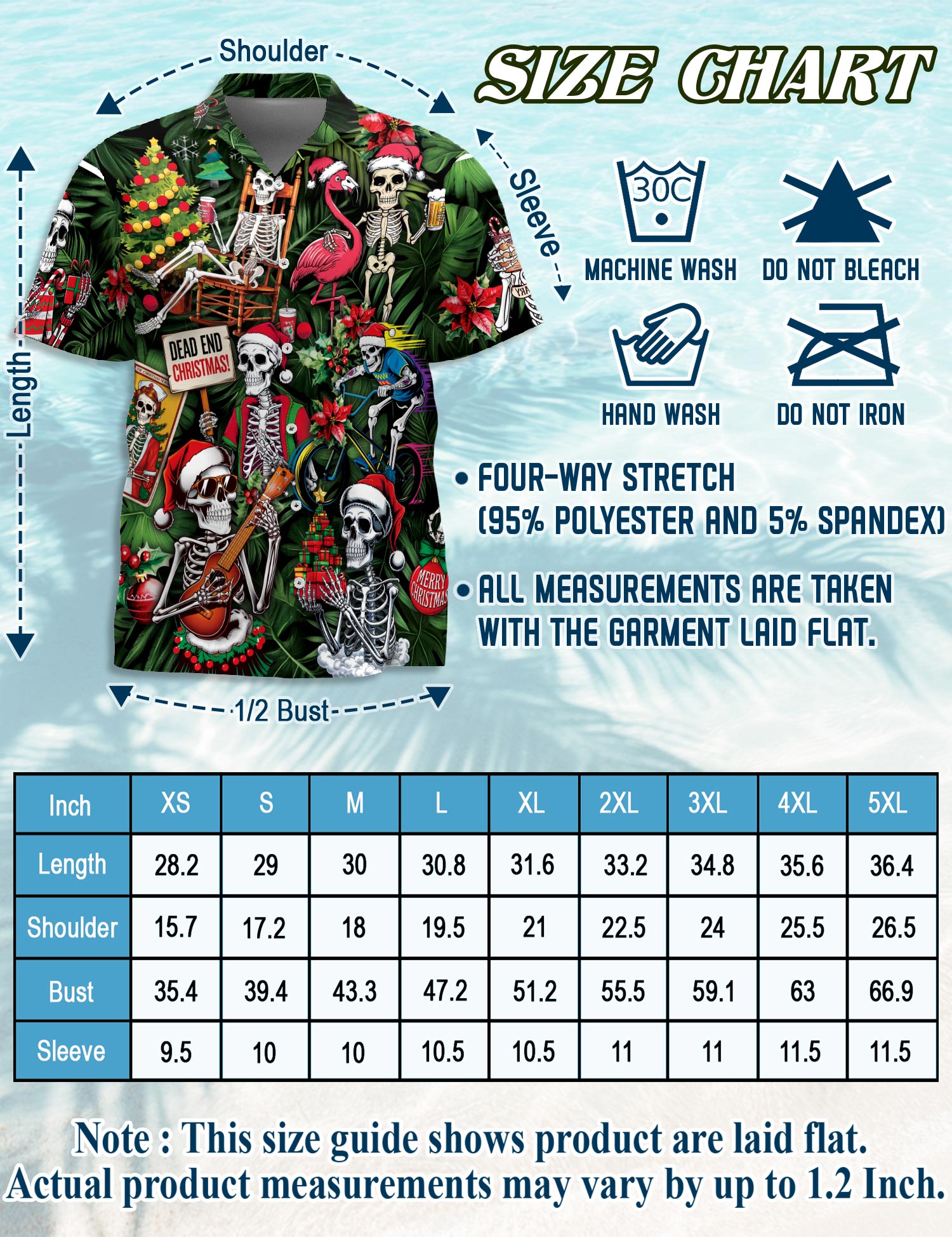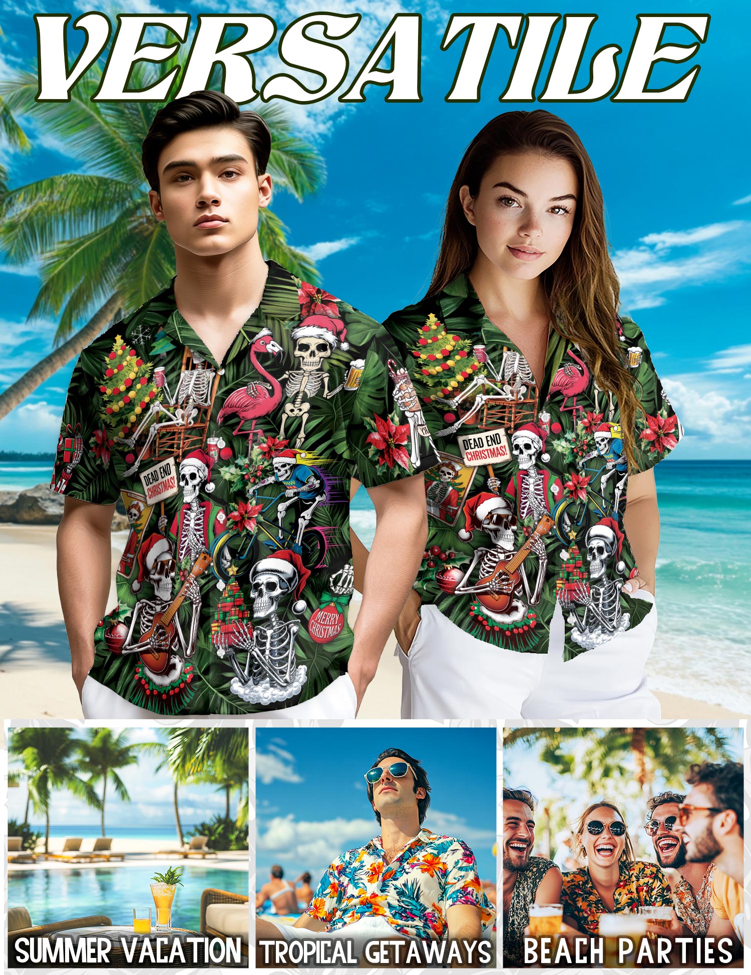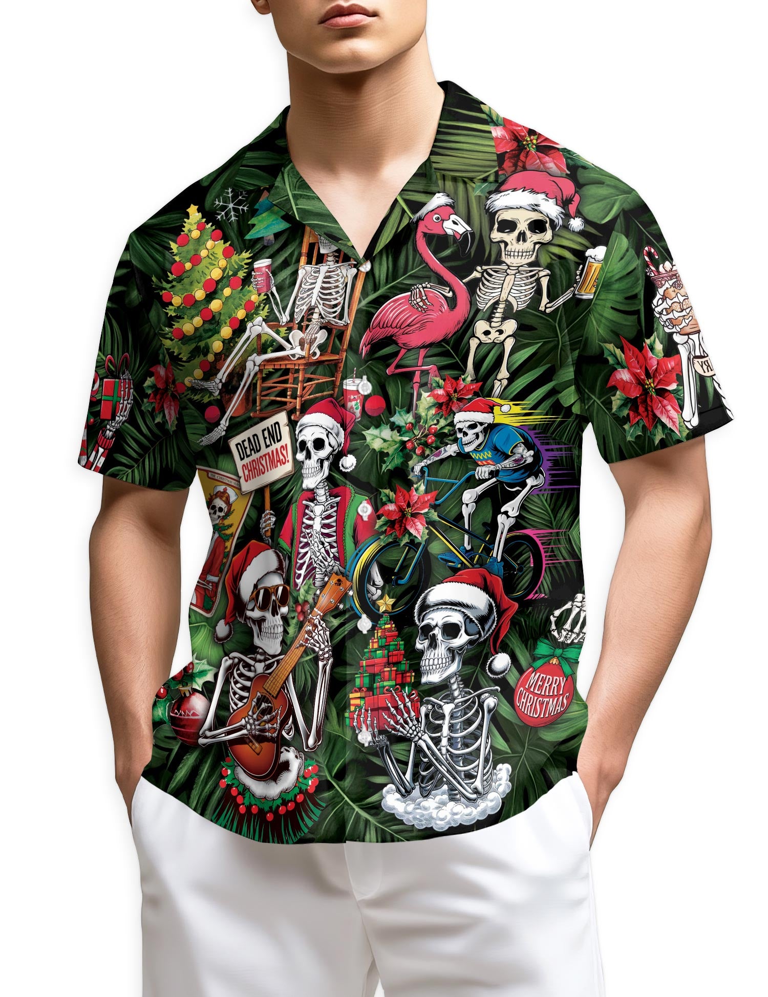 Netecom Skeleton Santa Claus Christmas Hawaiian Shirt for Men, Funny Skull Holiday Print Button Down Summer Beach Shirt, S-5XL