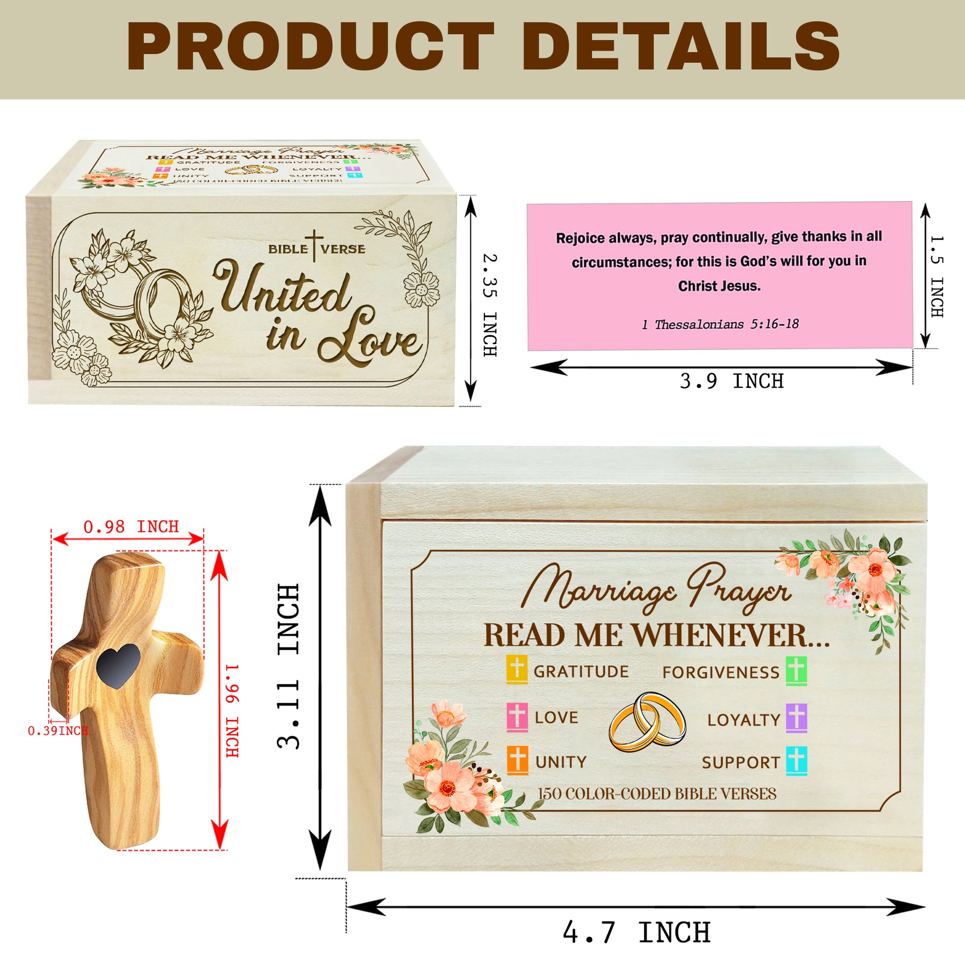 Netecom Bible Verse Box for Marriage with Prayer Cross, 150 Upgrade Bible Verse Cards Box Set for Emotions and Feelings, Anniversary Wedding Gift for Couple, Handmade Inspirational Prayer Box Gift