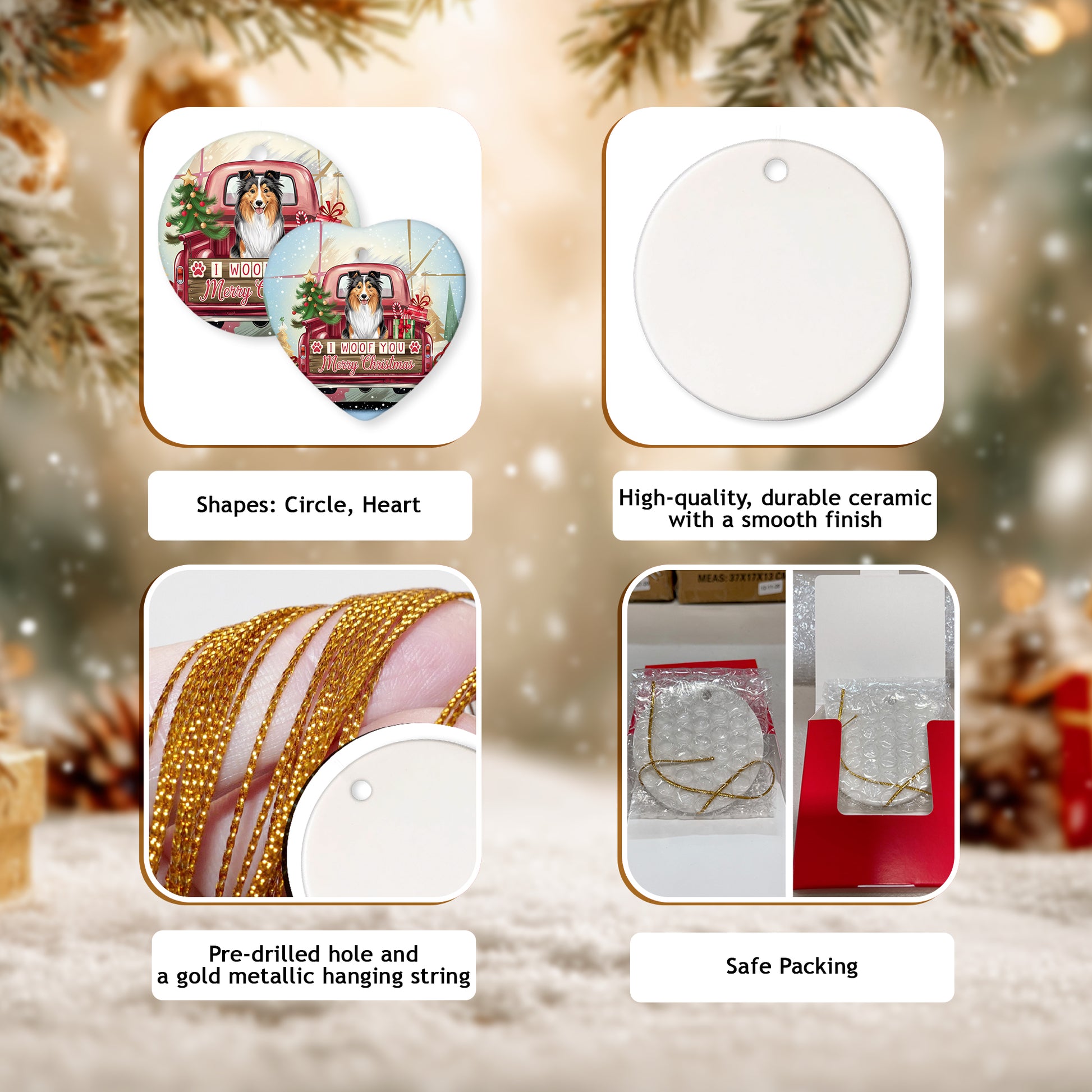 Netecom Funny Shetland Sheepdog in Red Truck Ornament, I Woof You Merry Christmas Ceramic Ornament for Christmas Tree Hanging Decorations Gift, Dog Lover Gifts, Holiday Party Present