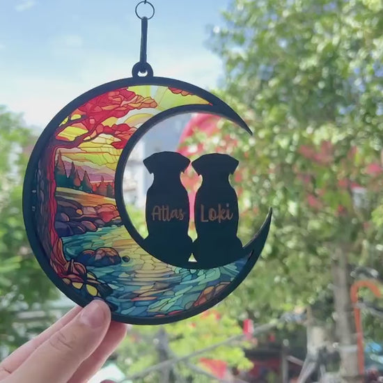 Netecom 2-3 Pets Passing Away Memorial Ornament – Dog & Cat Memorial Suncatcher, Loss of Pet Sympathy Gift, Dog Mom Stained Glass, Rainbow Bridge Remembrance