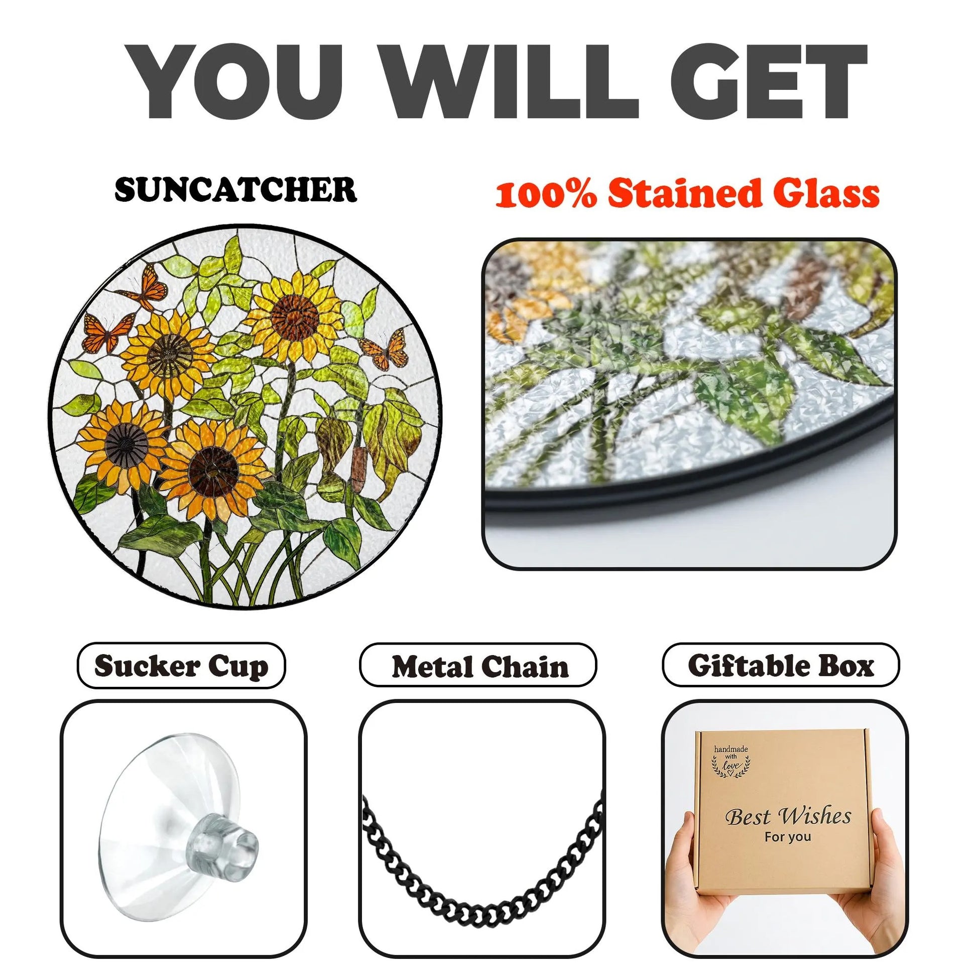 Netecom 8" Sunflower Stained Glass Suncatcher – Floral Window Hanging Decor, Sunflower Ornament Gift for Home and Garden Lovers