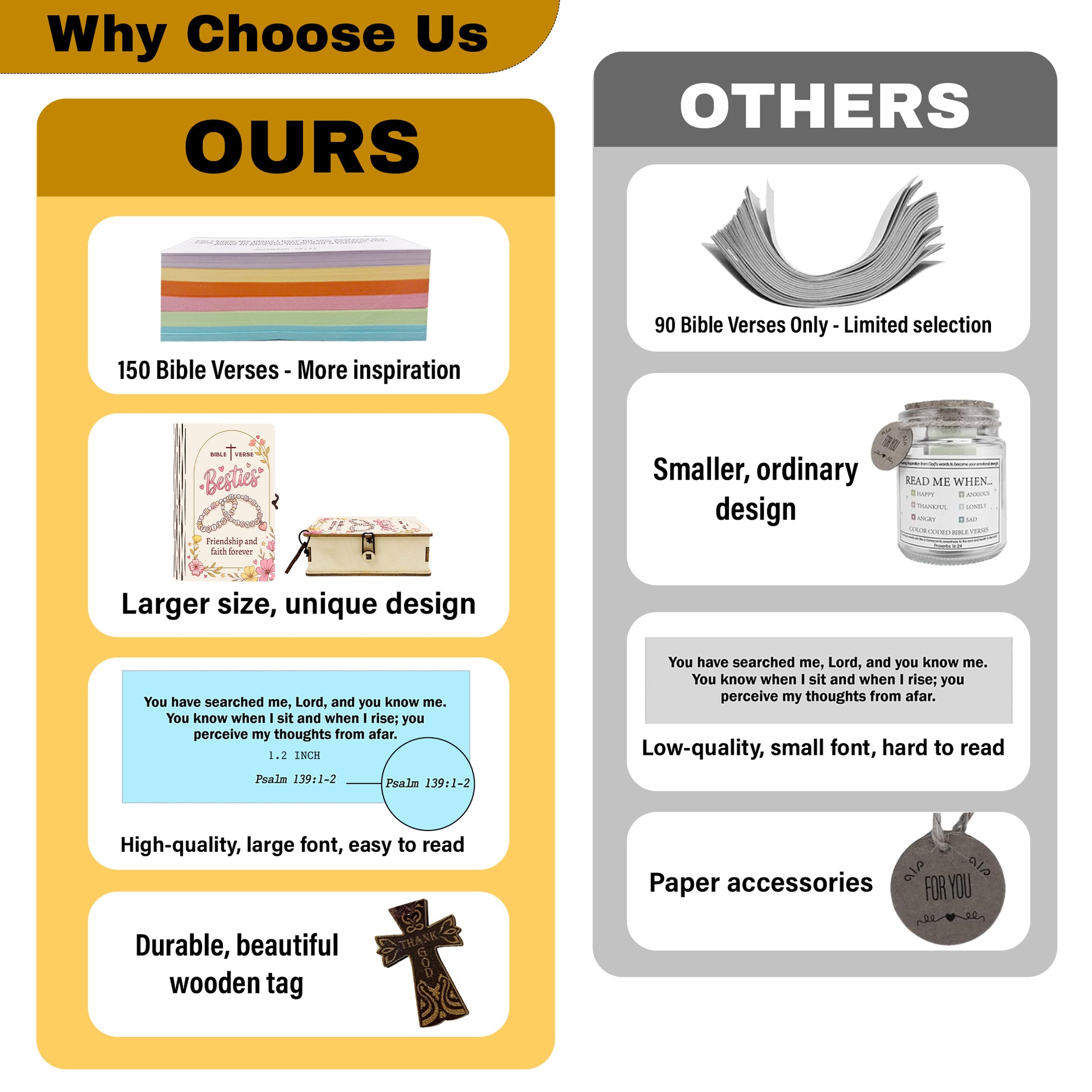 Netecom Bible Verse Box for Besties – 150 Color-Coded Scriptures with Christian Friendship Devotion, Includes Mini Cross, Faith Encouragement Gift for Women & Girls