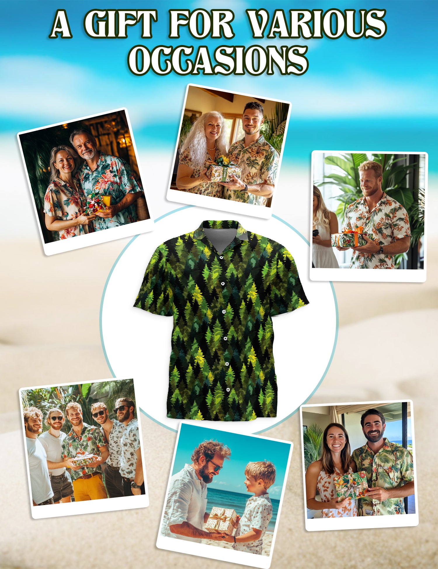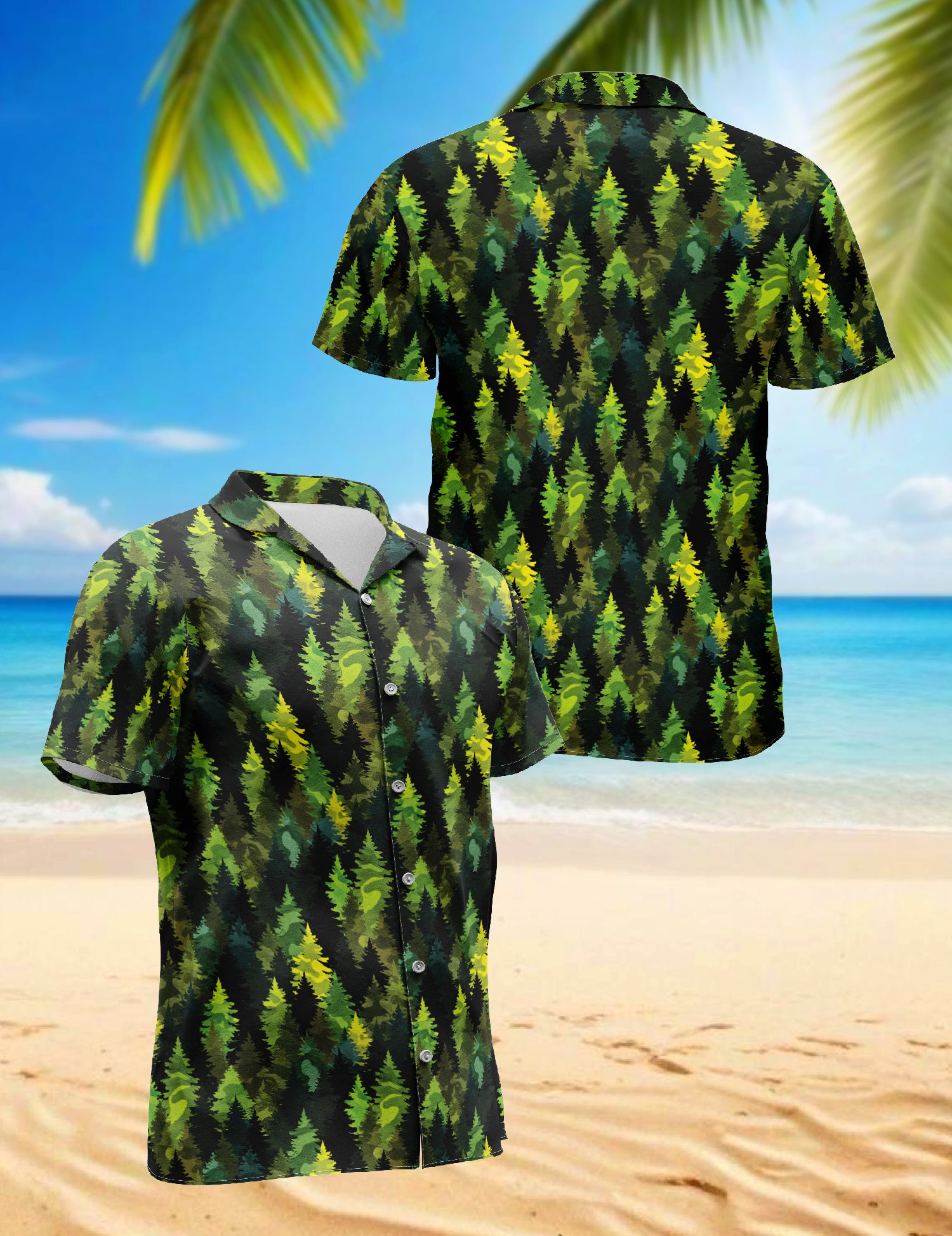 Netecom Camouflage Pine Tree Hawaiian Shirt, Forest Green Woodland Pattern Button Down Short Sleeve Shirt