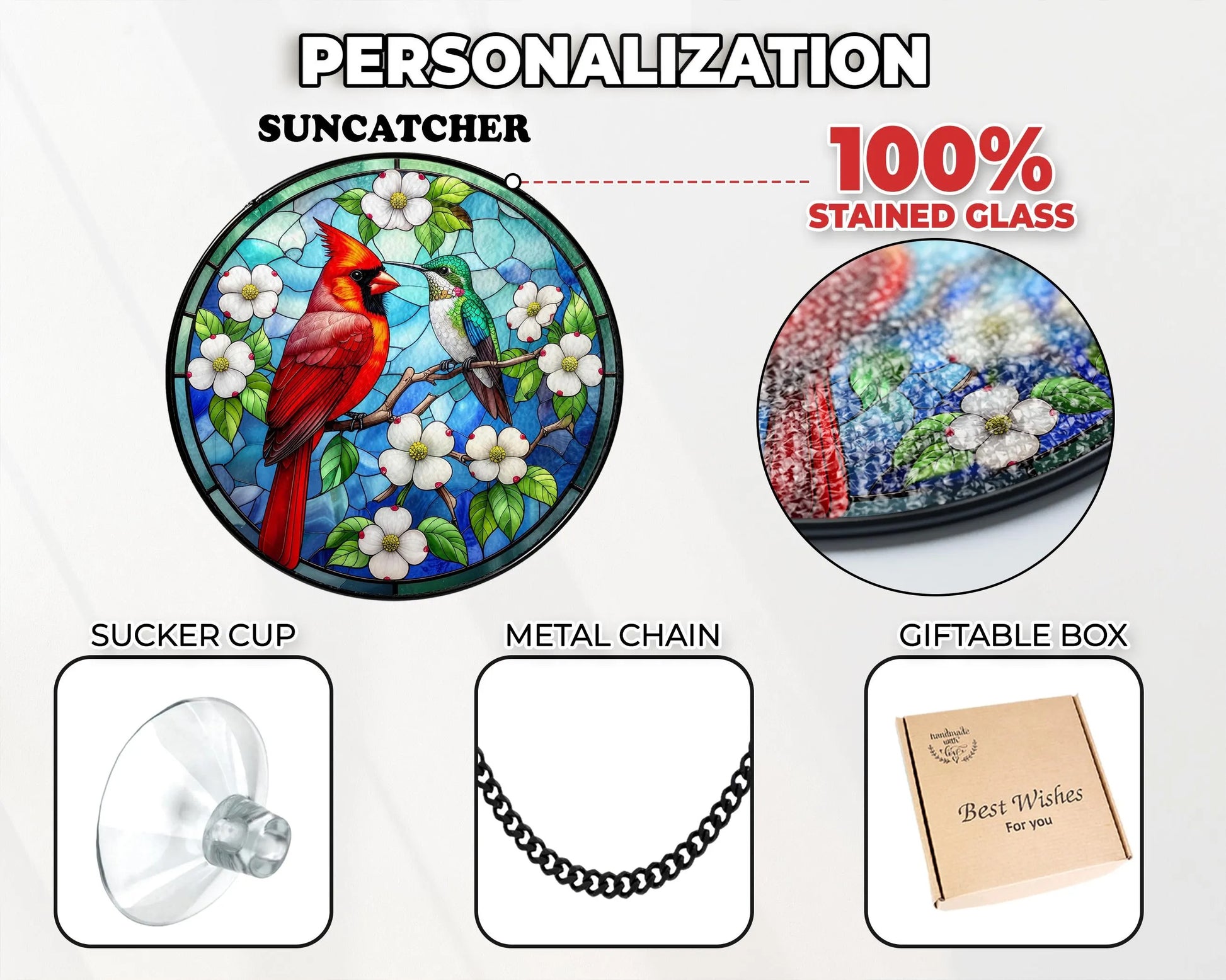 Netecom Cardinal Hummingbird Stained Glass Suncatcher – Window Hanging, Bird Lover Gift, Memorial Suncatcher, Elegant Home Decor, Memorial Gift for Women