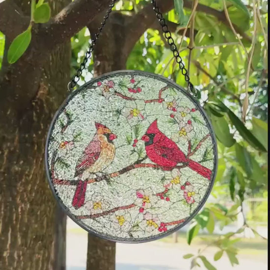 Vibrant & Elegant: This suncatcher features a beautiful design of a cardinal and hummingbird that creates a captivating sparkle as sunlight shines through, adding charm and beauty to your space.
