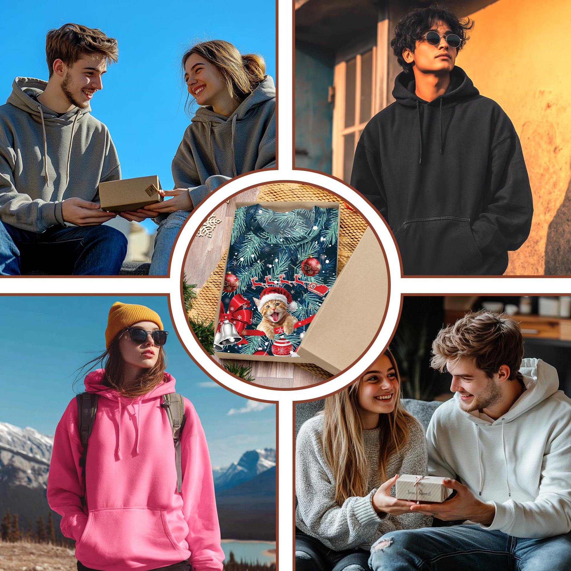 Netecom Christmas Cat 3D Hoodie with Front Pocket, Unisex Casual All Over Funny Kitten Santa Graphic Sweatshirt