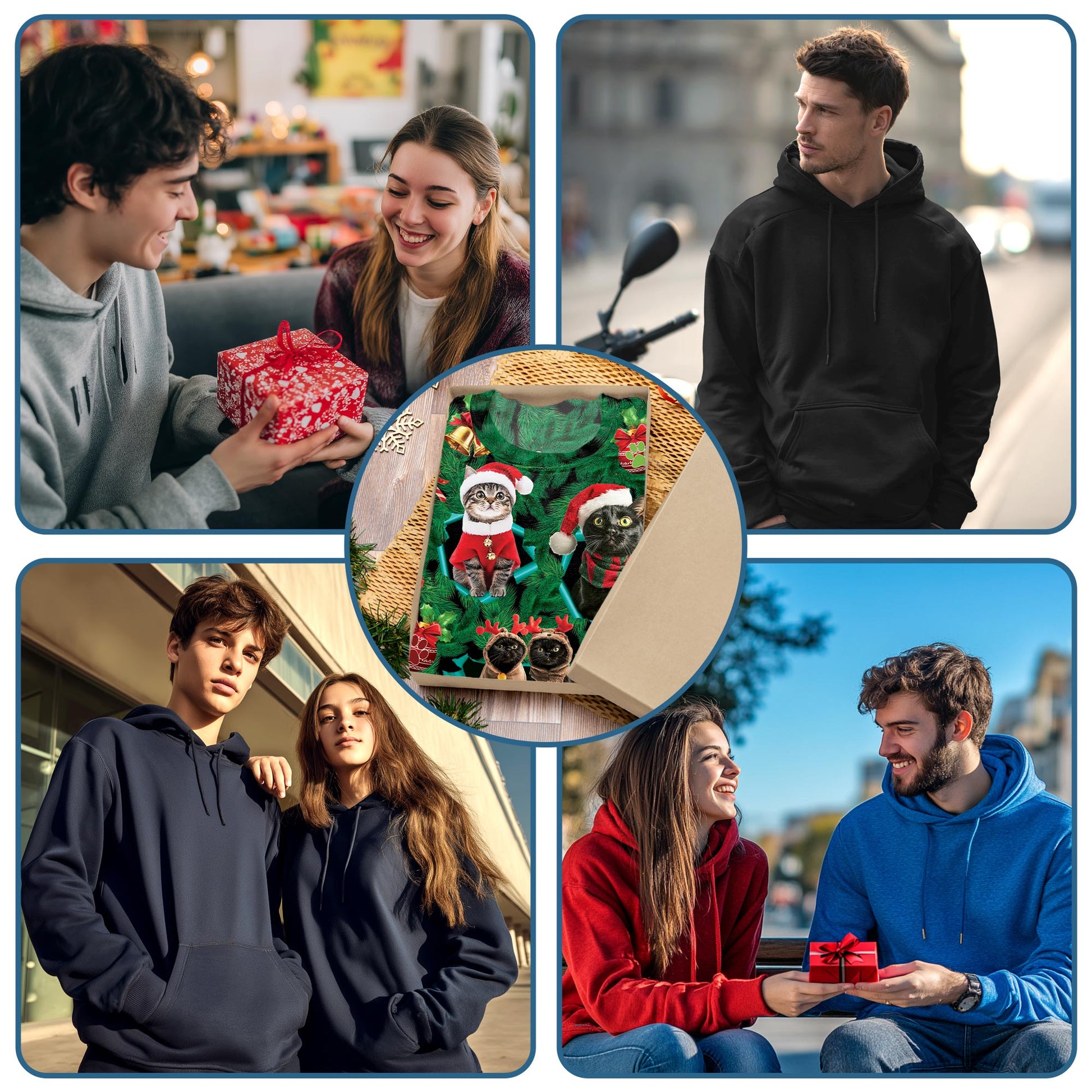Netecom Christmas Cats Print Hoodie with Front Pocket, All Over Cute Kitten Holiday Graphic Sweatshirt Unisex Casual