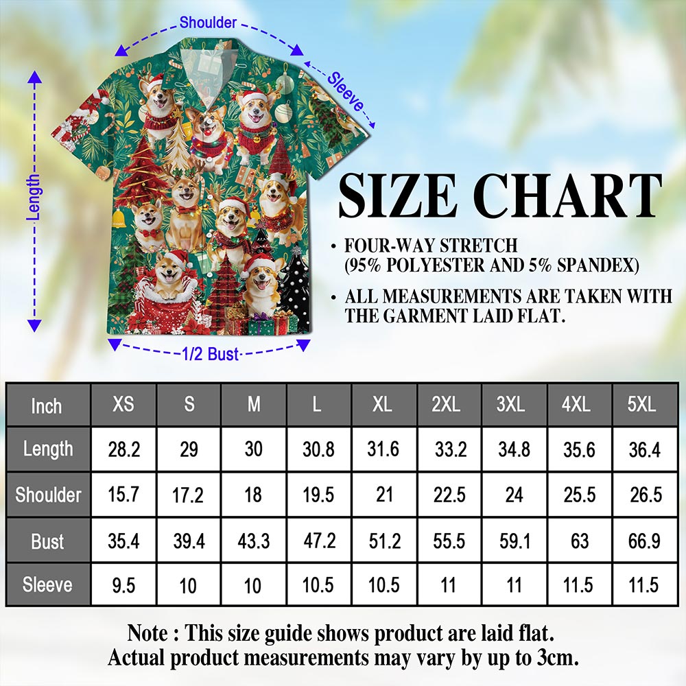 Netecom Christmas Corgi Hawaiian Shirt for Men Women, Cute Dog Lover Holiday Aloha Button Down Short Sleeve Shirt, S-5XL