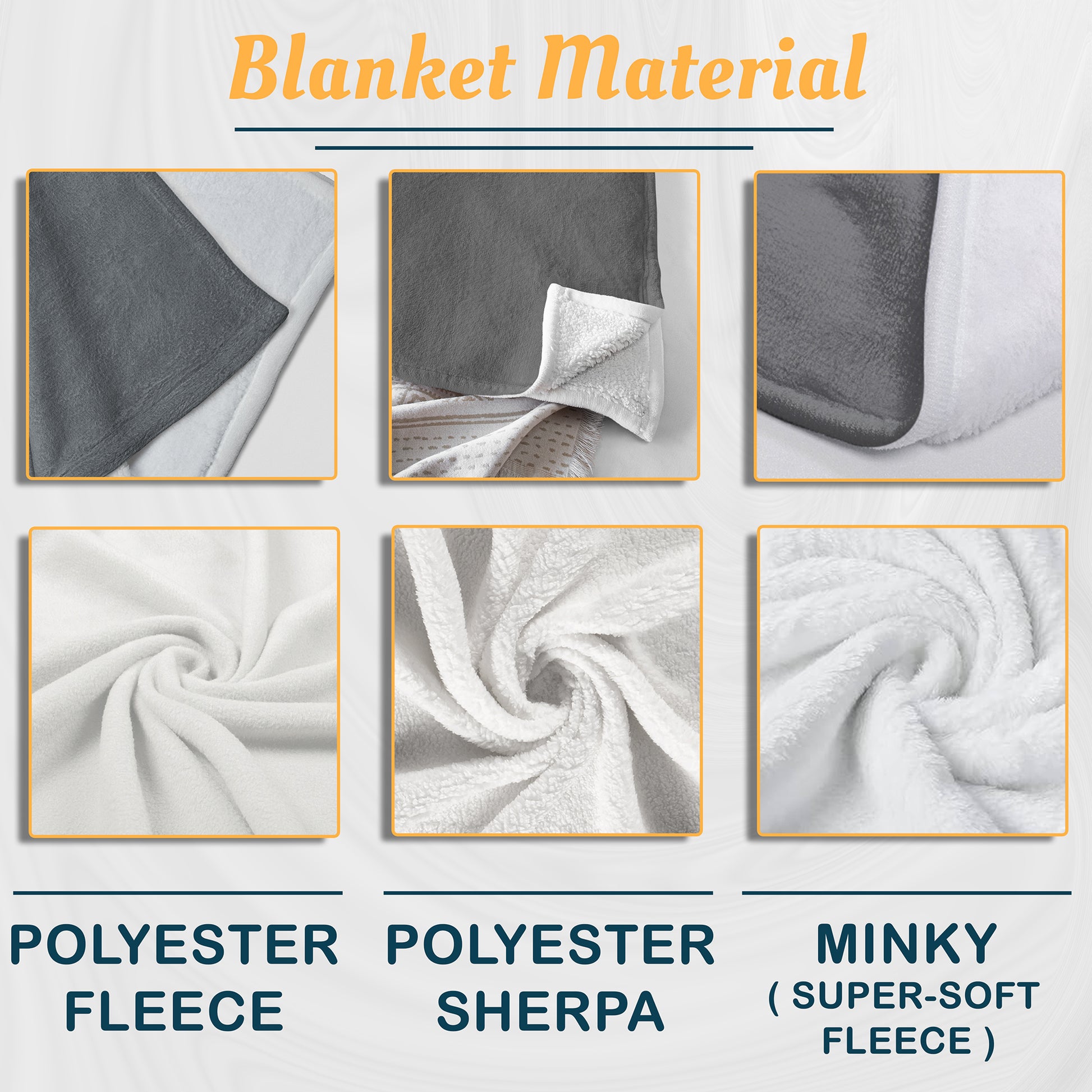 [MATERIAL OPTIONS]: Available in Sherpa, or Fleece – all ultra-soft, warm, and perfect for everyday comfort. The plush texture deliver lasting comfort, ensures vivid edge-to-edge designs that won’t fade over time.