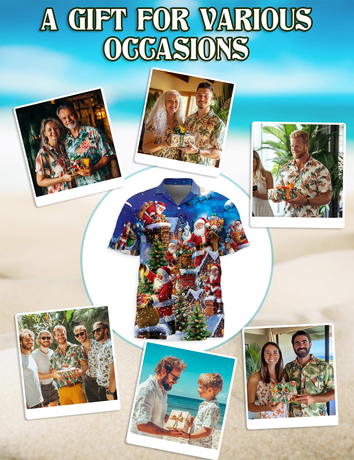 Netecom Christmas Rooftop Santa Claus Hawaiian Shirt, Holiday Chimney Night Scene Button Down Summer Beach Shirt, S-5XL