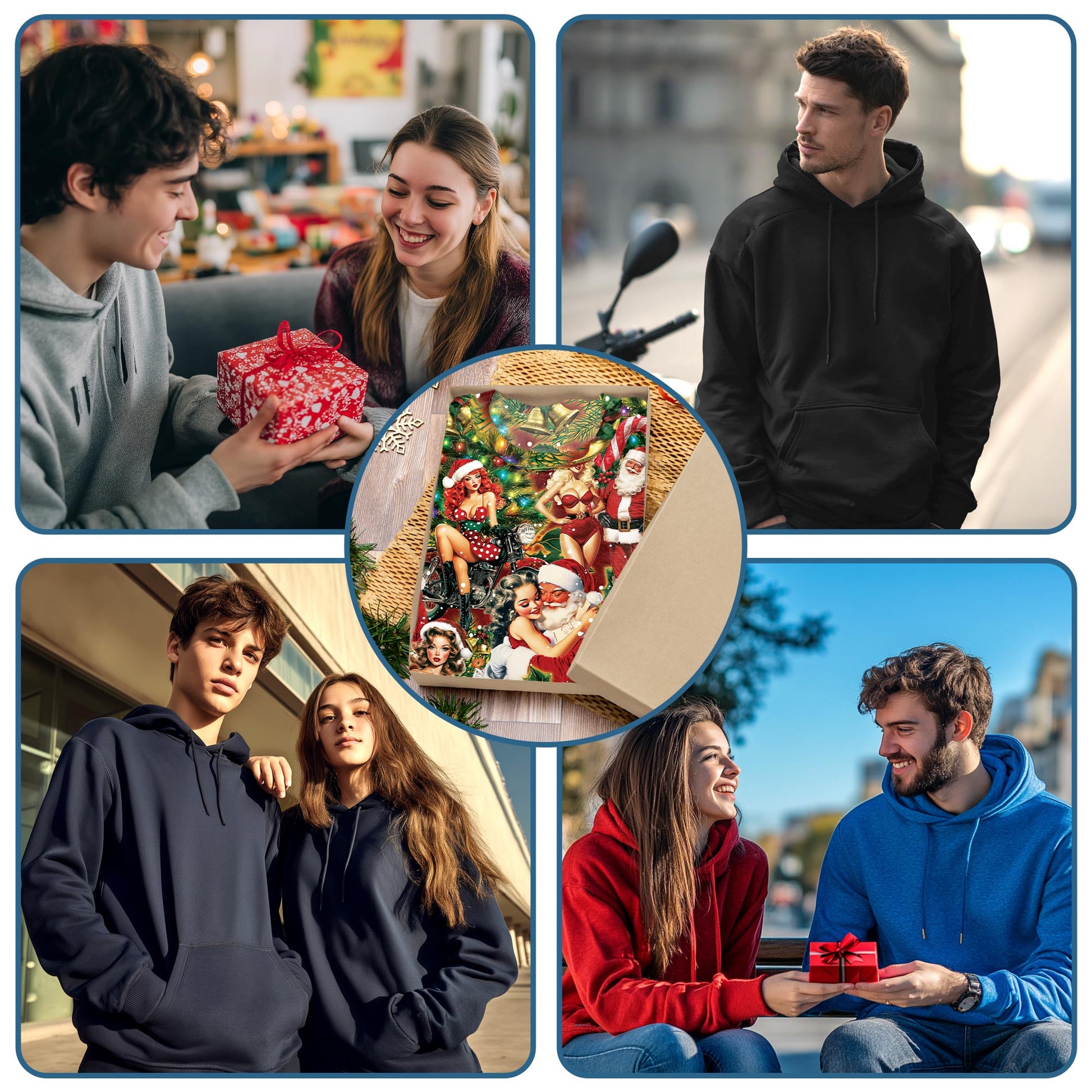 Netecom Christmas Santa Claus Pinup Girl Print Hoodie with Front Pocket, All Over Vintage Graphic Sweatshirt Unisex Casual