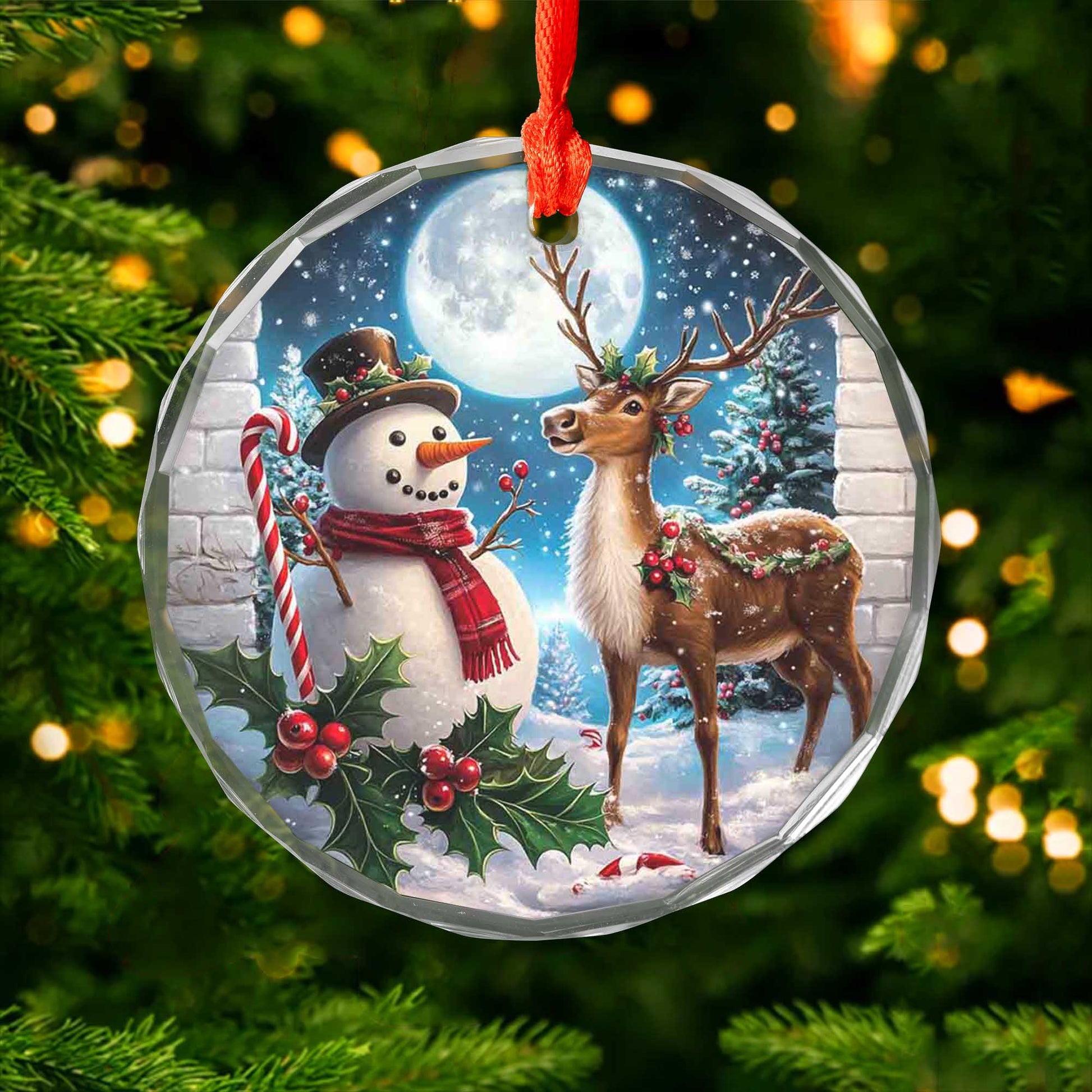 Netecom Christmas Snowman & Reindeer Glass Ornament – Holiday Decoration, Beautiful Keepsake Gift, 3 in